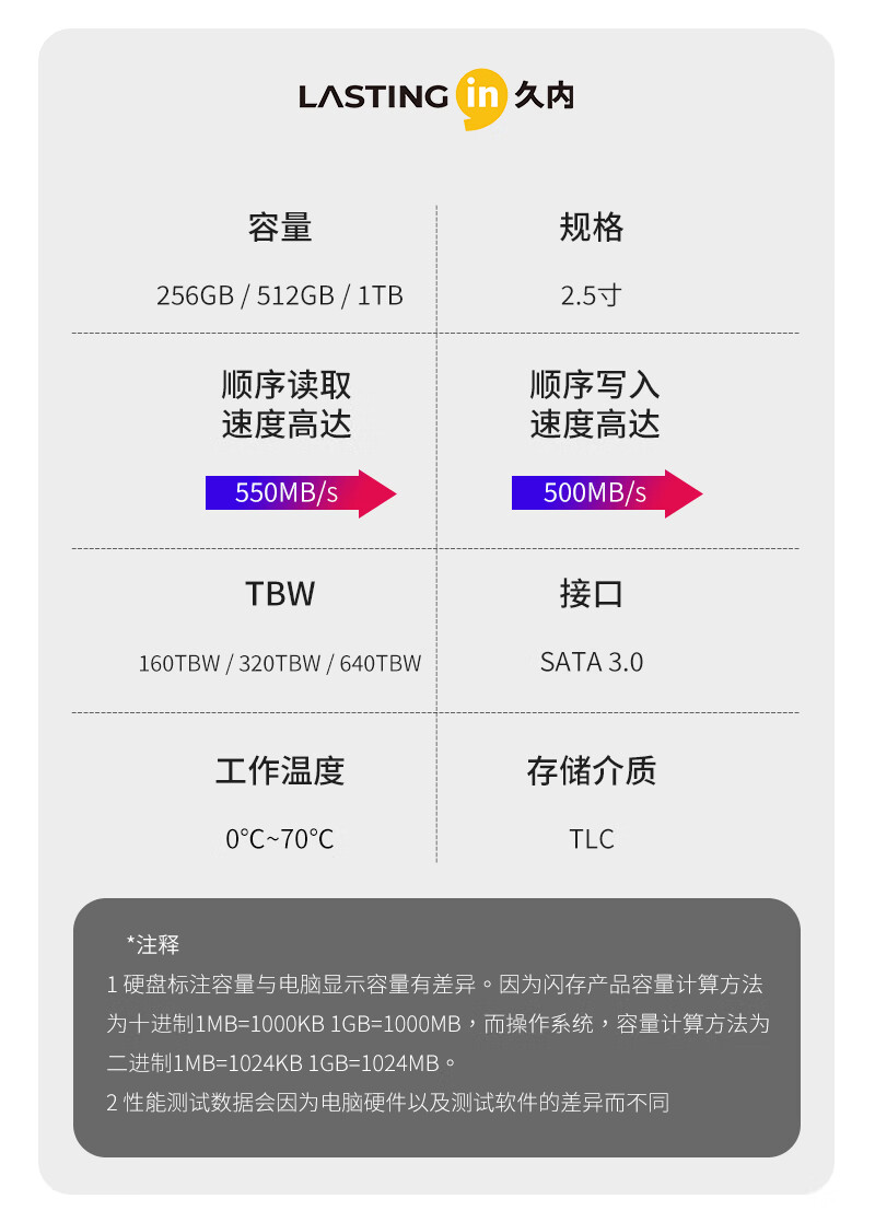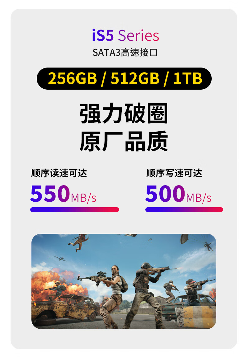 Unidad de estado sólido Jiunei SSD interfaz sata3.0 partículas TLC originales computadora portátil de 2,5 pulgadas velocidad de lectura general de hasta 550 MB/s serie is5 512G 550 M/S partículas TLC