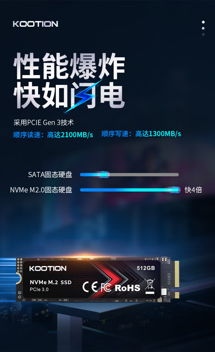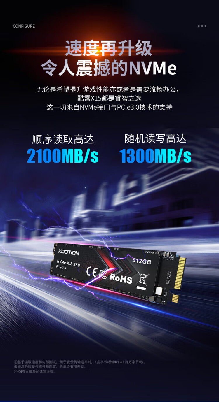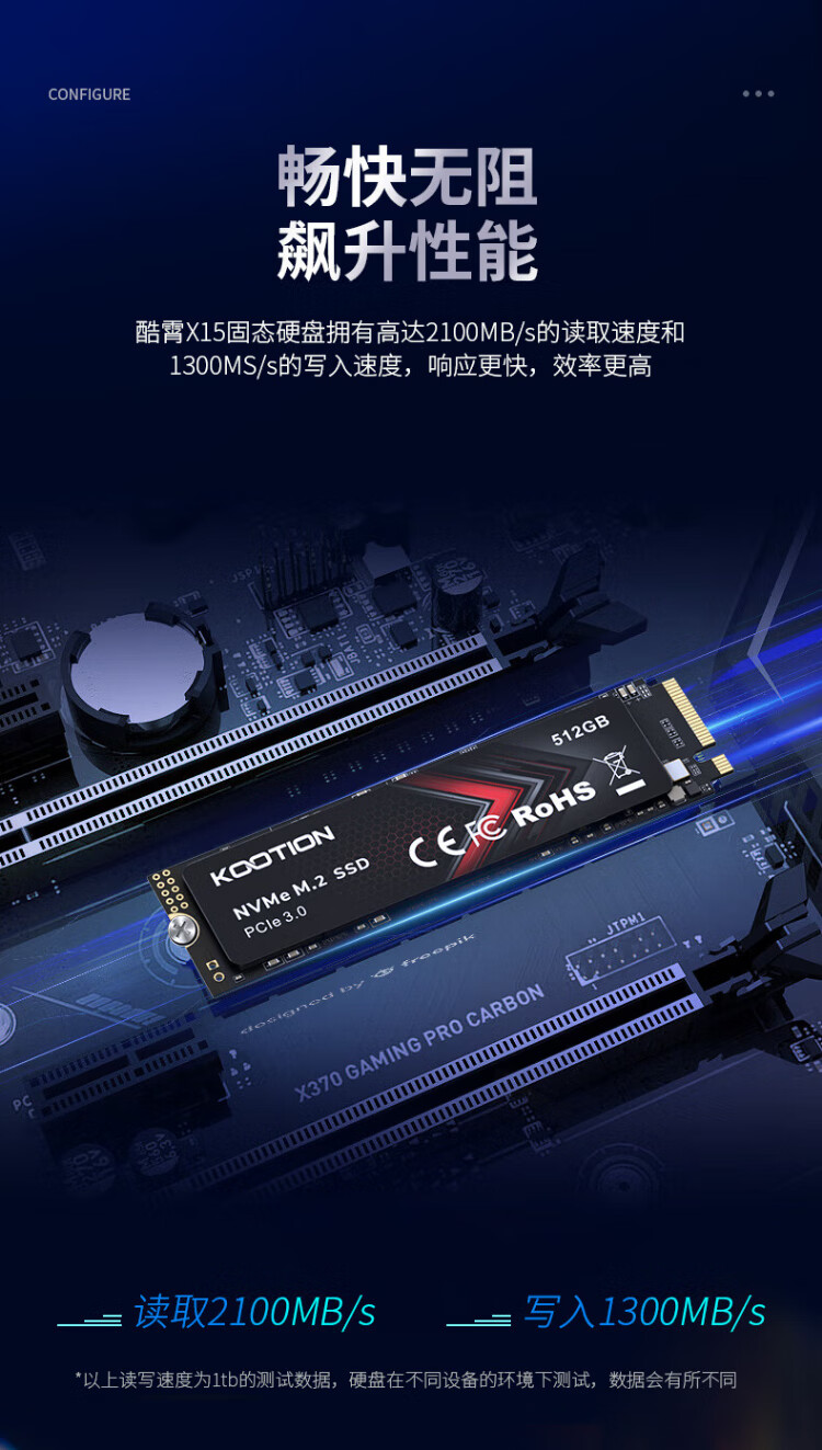 KOOTION酷霄 SSD固态硬盘m.2(NVMe协议)PCIe3.0x4长江颗粒内置台式笔记本电脑硬盘 【512G】X15L-PCle3.0 精选颗粒
