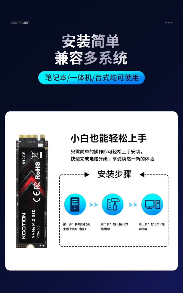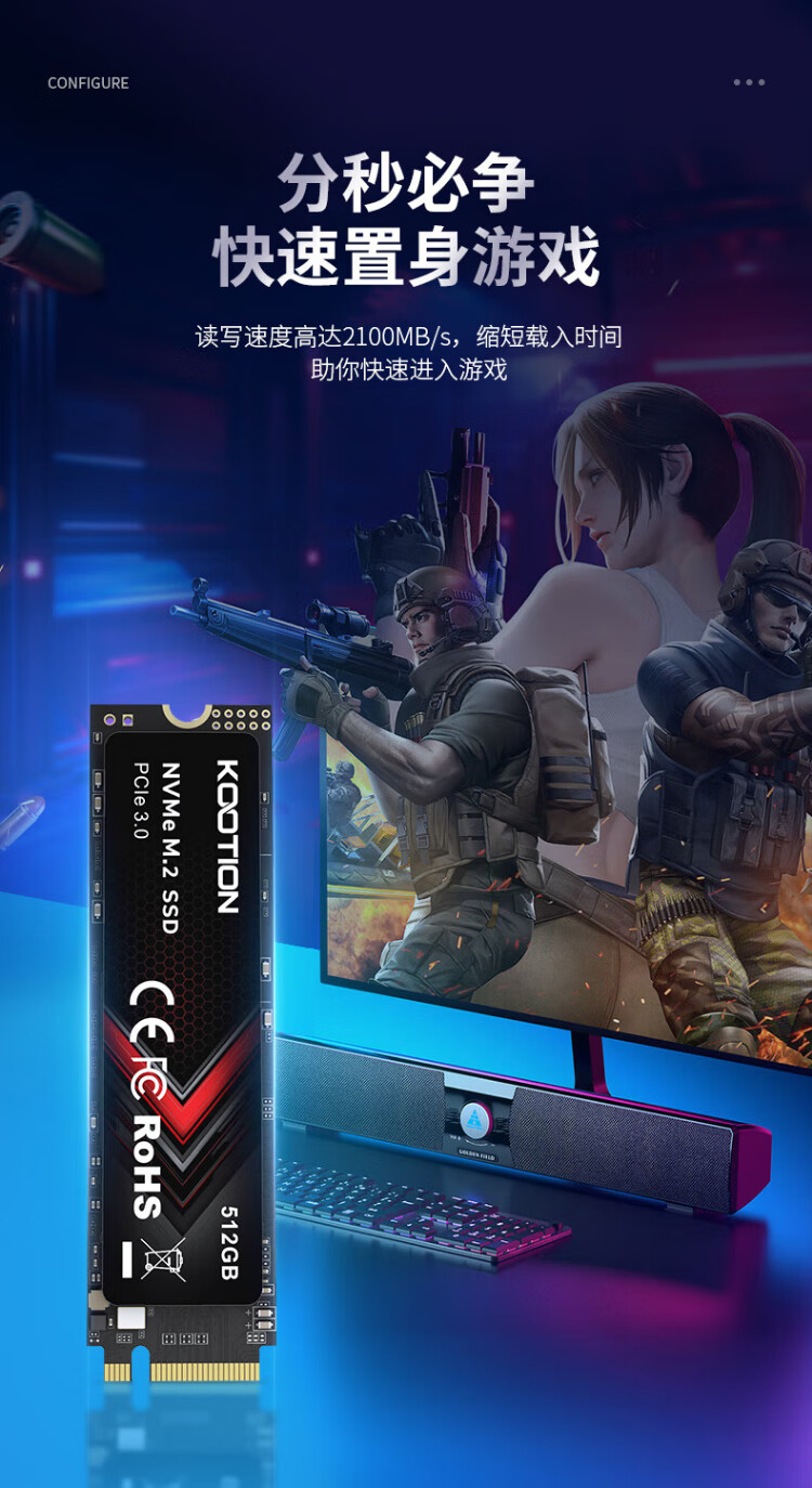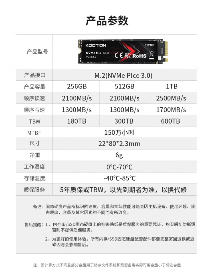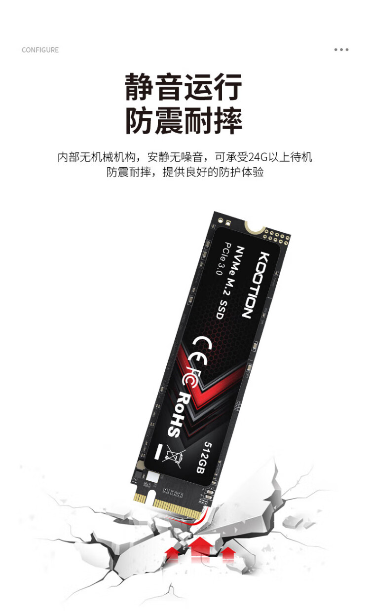 KOOTION酷霄 SSD固态硬盘m.2(NVMe协议)PCIe3.0x4长江颗粒内置台式笔记本电脑硬盘 【512G】X15L-PCle3.0 精选颗粒