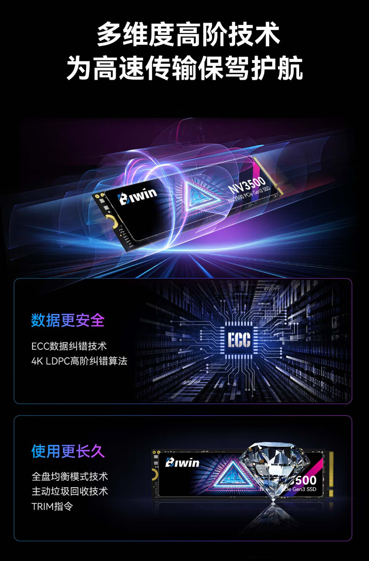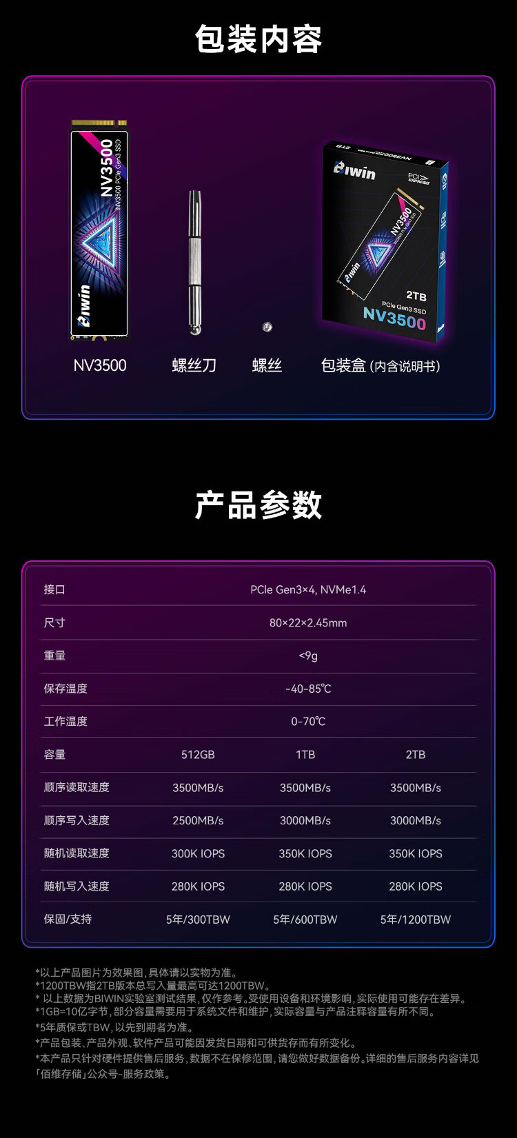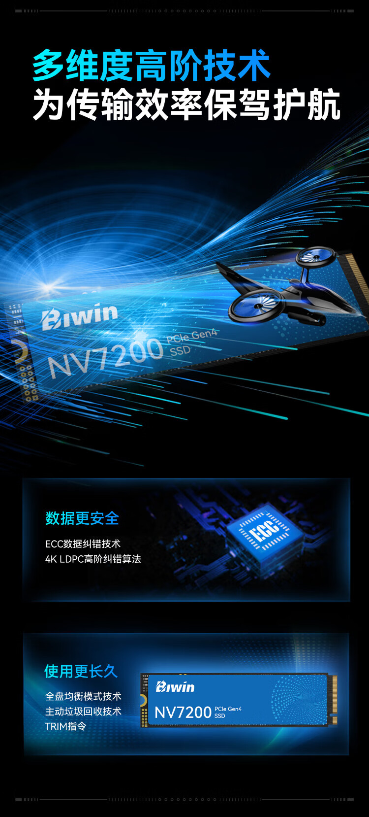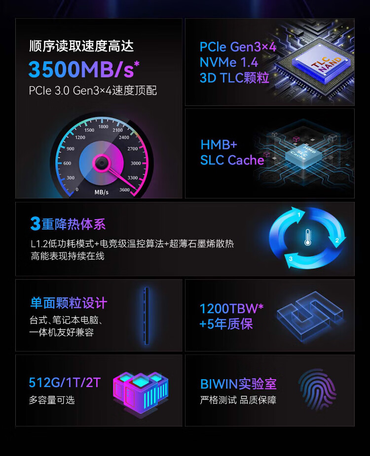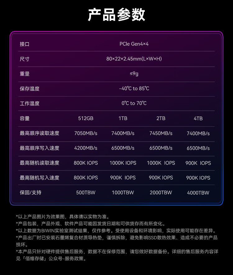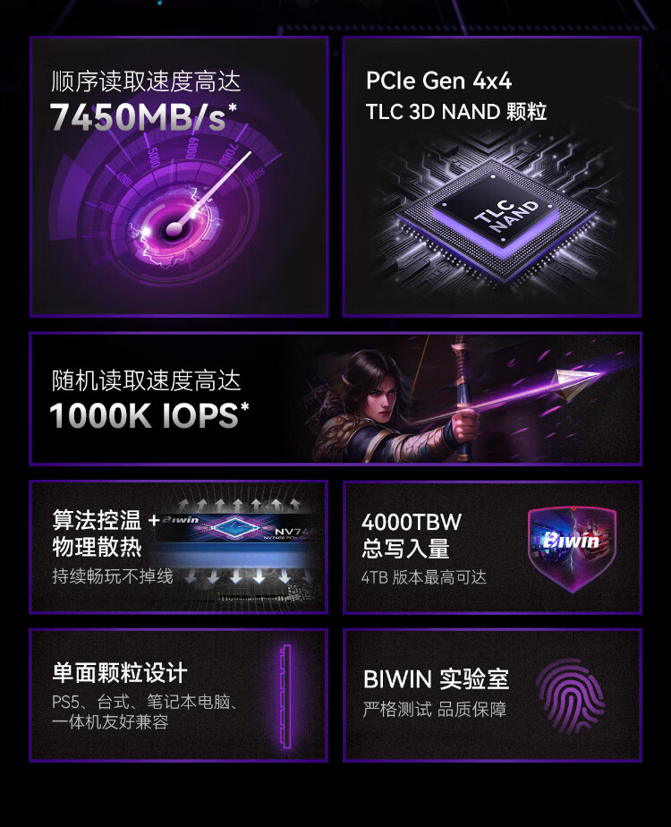 BIWIN NV7400 SSD SSD NVMe Solid State M.2 Interface 2280 SSD NV7200 NV3500 X570 ordinateur portable de bureau e-sports jeu disque dur NV7400 PCIe4.0 NVMe2.0 1 To