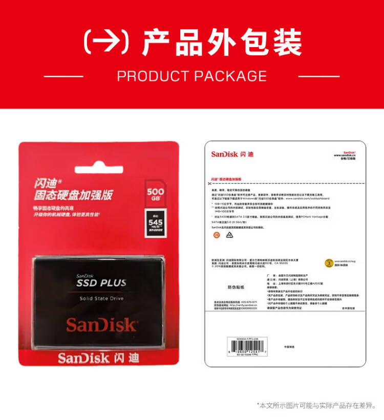闪迪(SanDisk)480GB SSD固态硬盘535MB/s读速PLUS性能加强版SATA接口2.5英寸TLC颗粒台式机笔记本扩容电脑升级