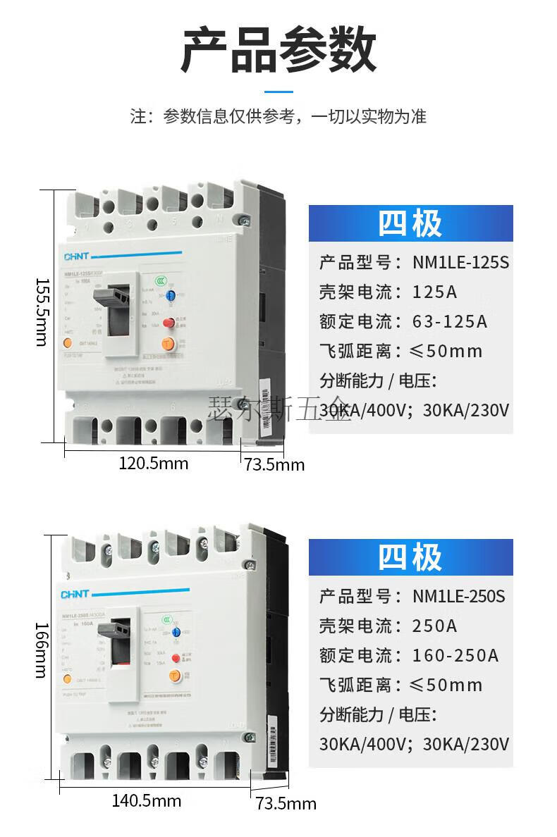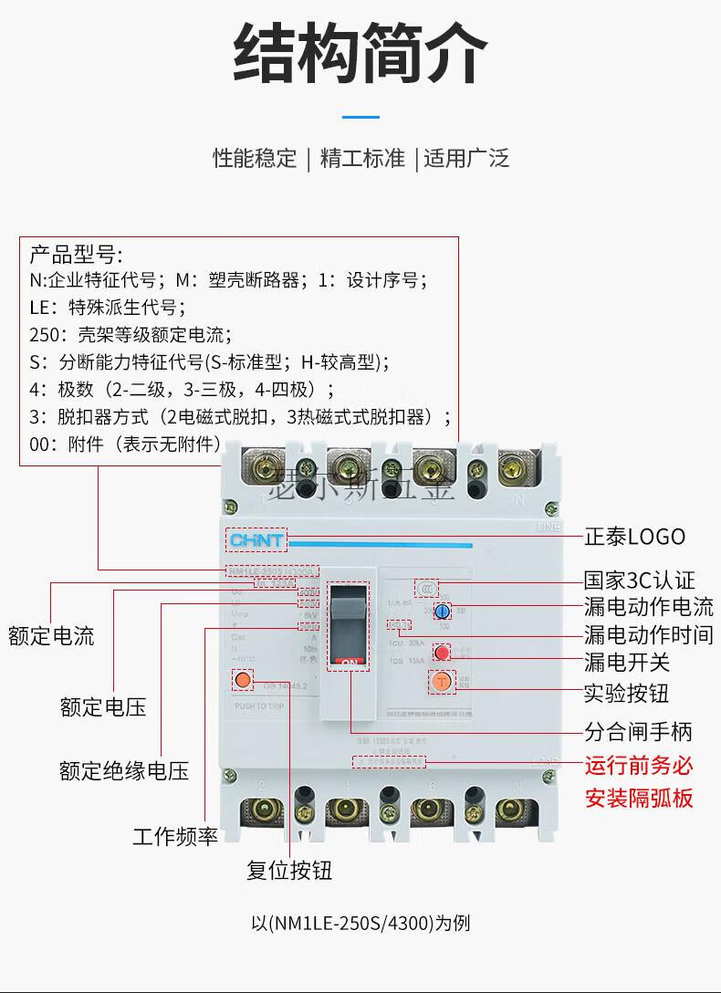 Chint (CHNT) Chint NM1LE boîtier en plastique disjoncteur de fuite 630a disjoncteur triphasé quatre fils protection contre les fuites 250a protecteur de fuite 315A 4p
