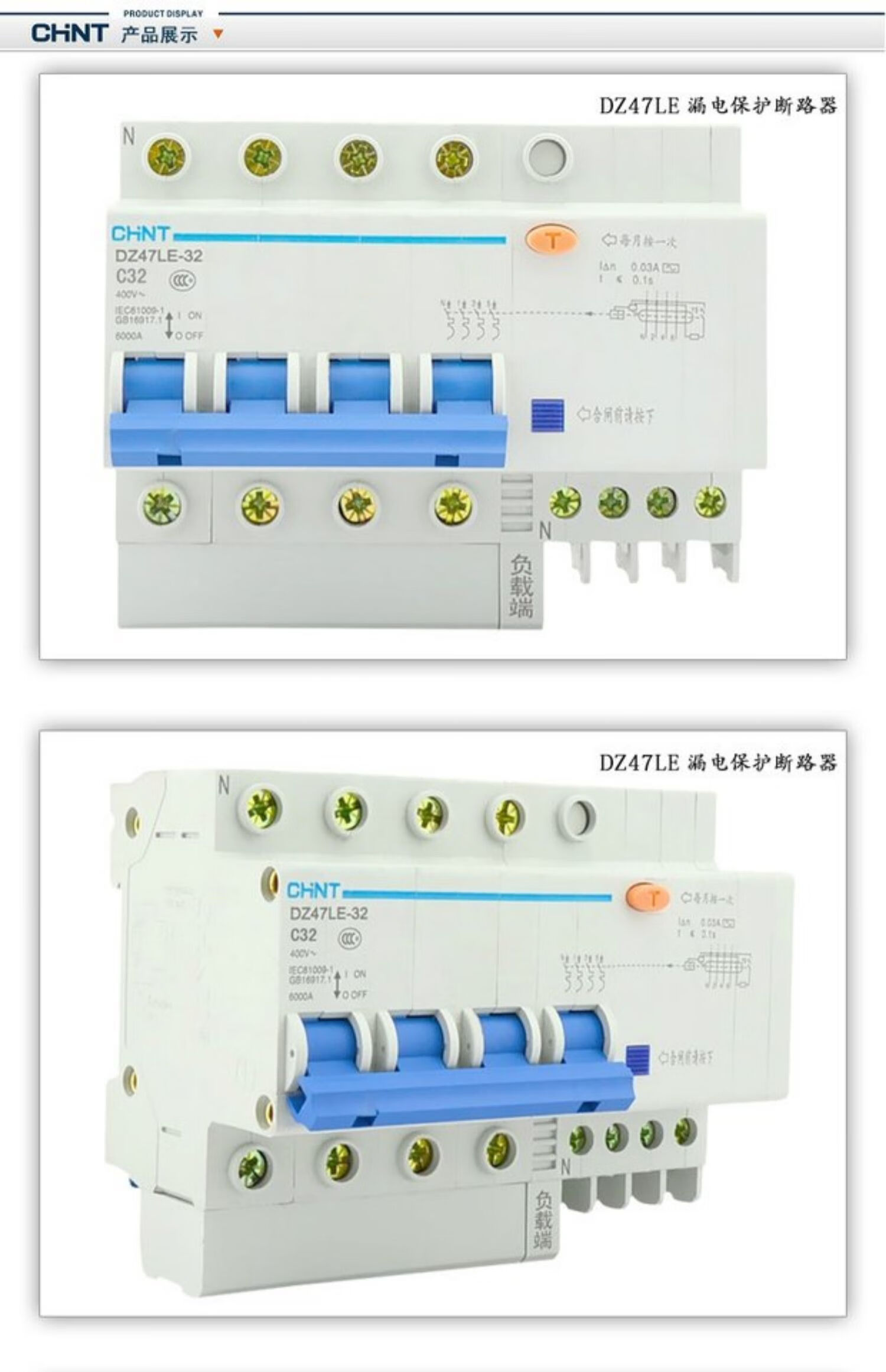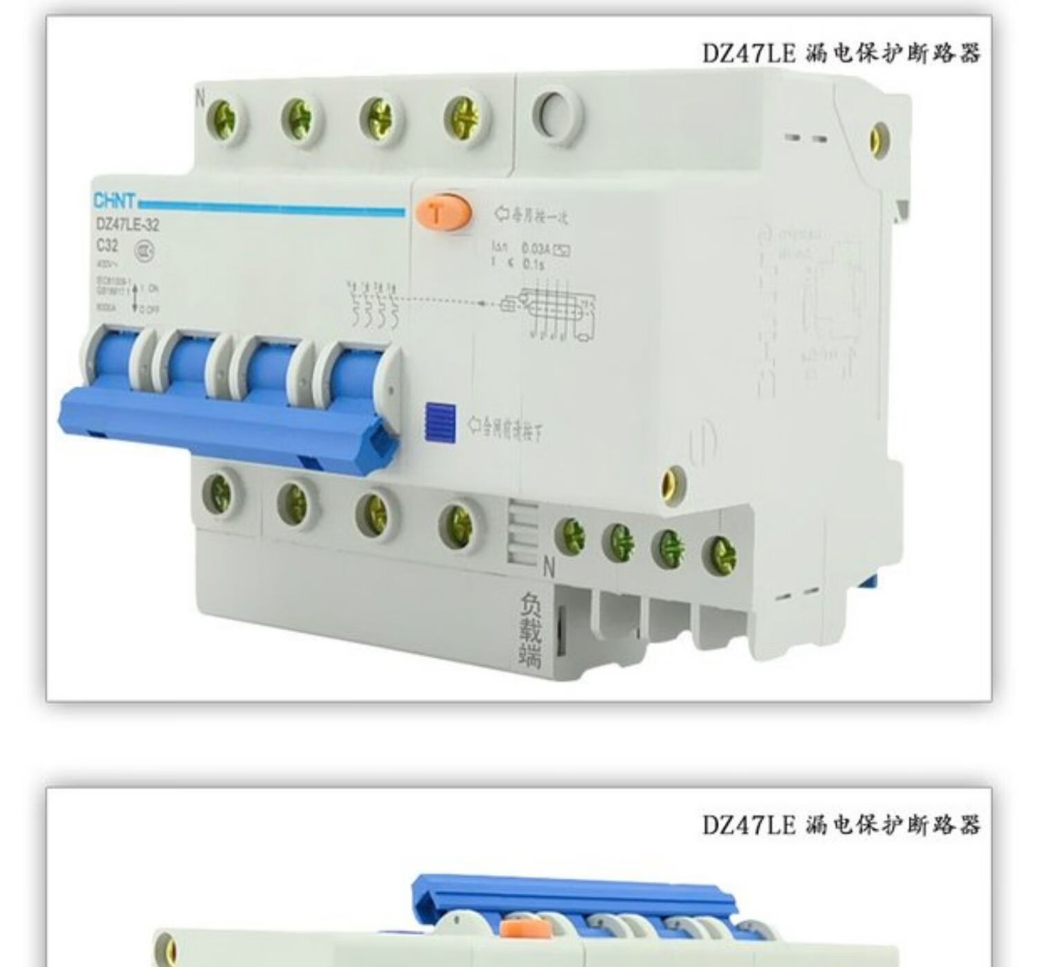 正泰(CHNT)正泰空气开关带漏电保护器4P四极四线断路器380V导轨DZ47LE-32/63 10A 4p