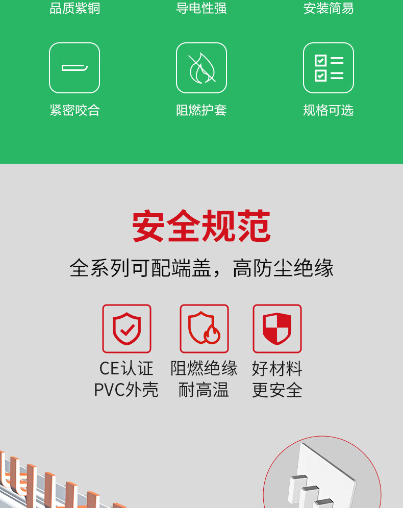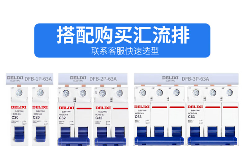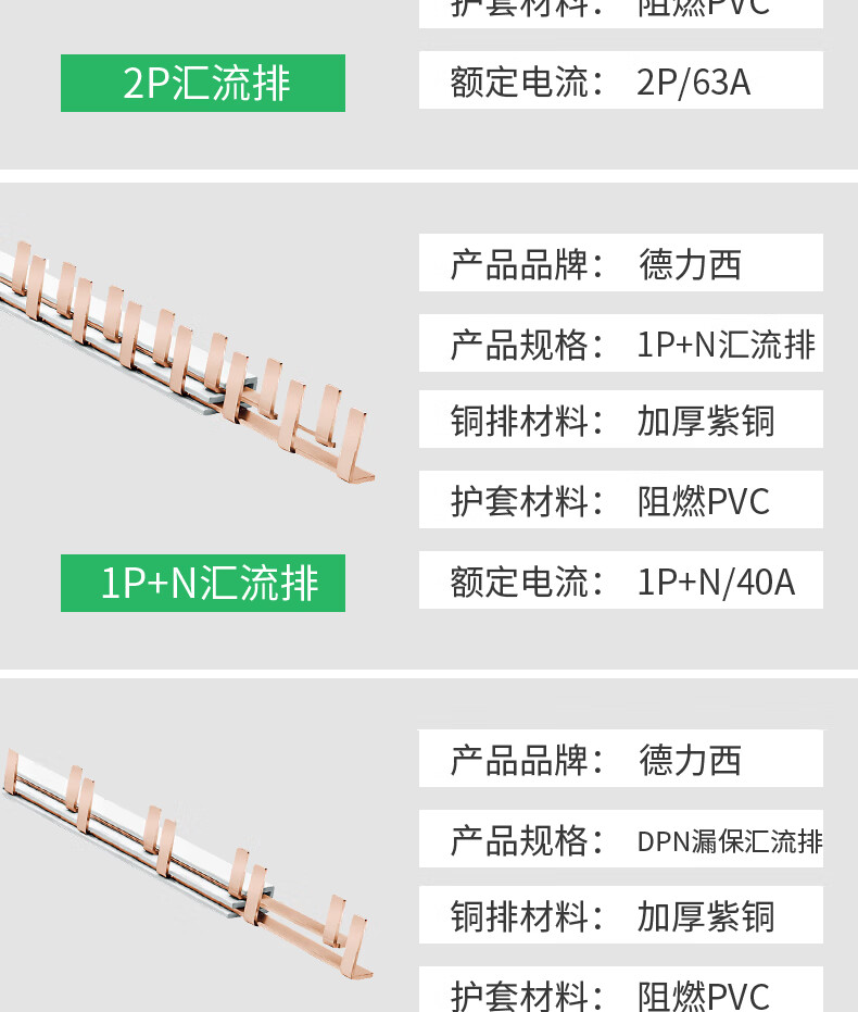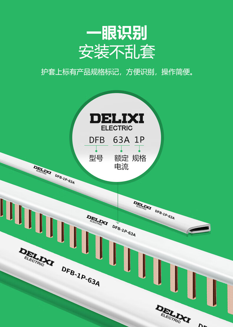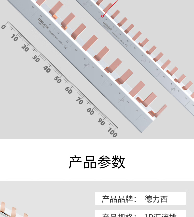 德力西电气空开汇流排带保护端盖2P3P小微型断路器DZ47用空开连接铜排 高端汇流排2P 6回路【带端盖】