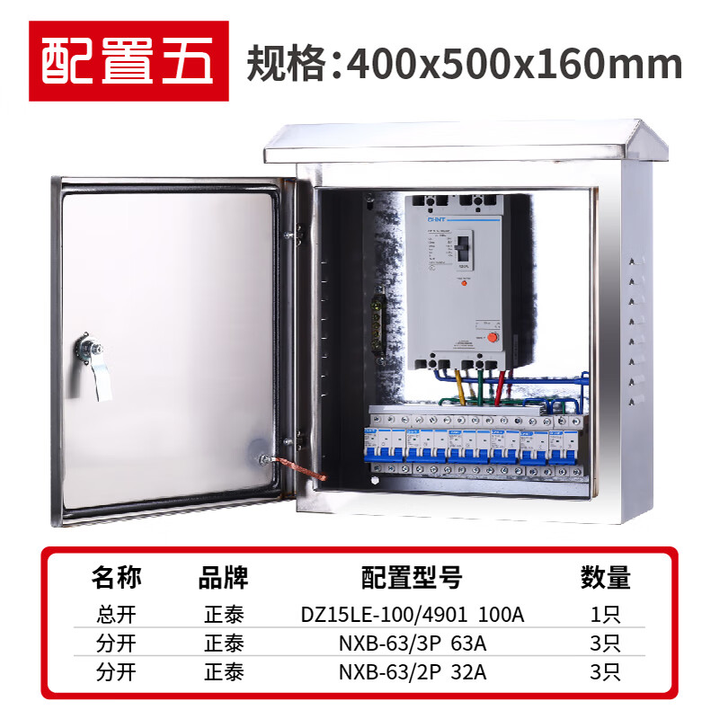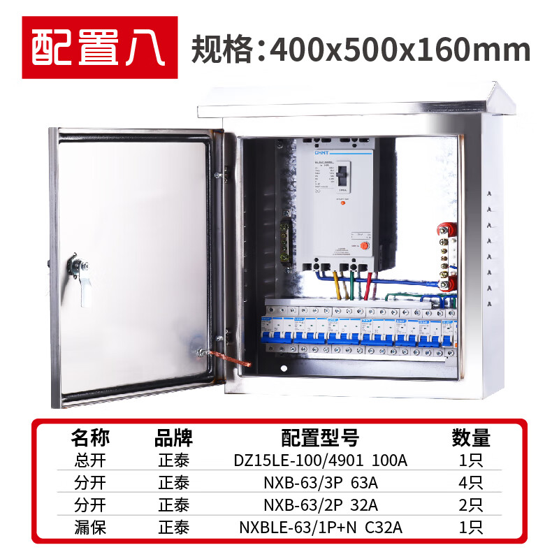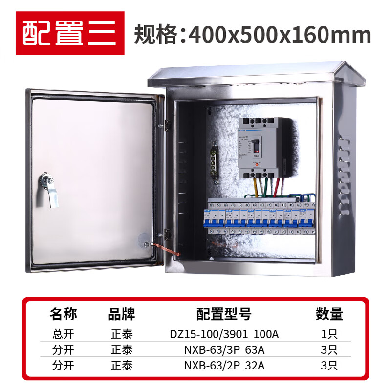 Chint (CHNT) Chint CHNT Chint Dreiphasen-Vierdraht-Wandverteilerkasten, komplettes Set aus fertigem 304-Edelstahl für den Außenbereich, regensicher und wasserdicht, Chint-Edelstahl 304, regensicherer Kasten, Konfiguration eins