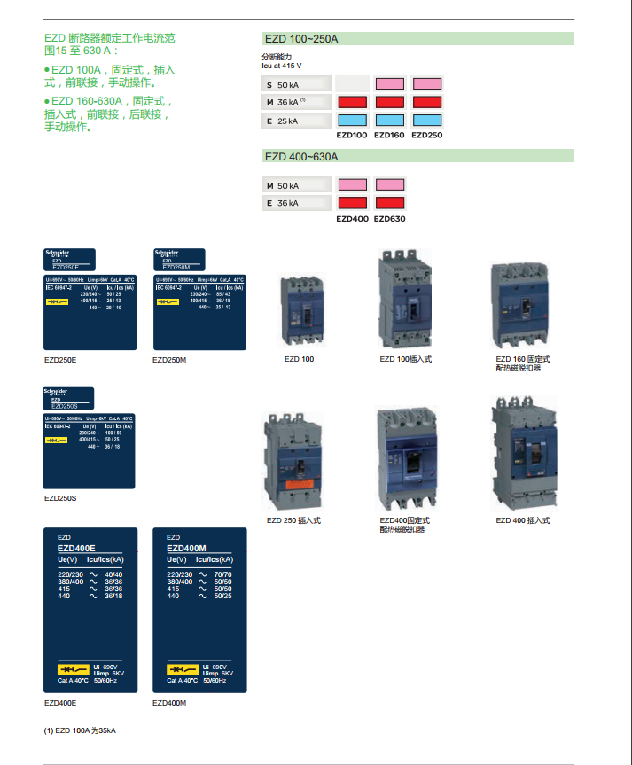 Schneider Electric 400a160a100a ezd boîtier en plastique interrupteur de disjoncteur de moteur pneumatique 380V3p4p630a 4P 30A