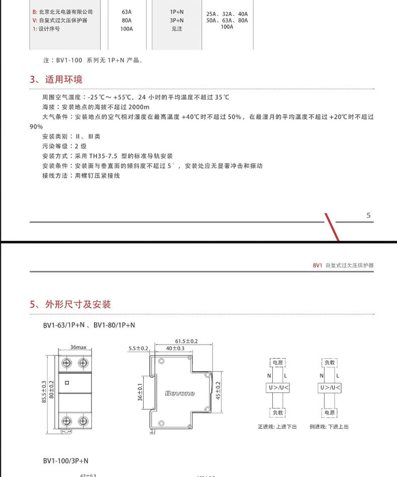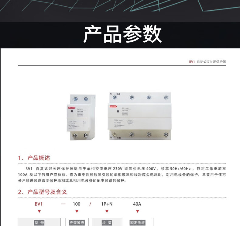 Beiyuan Electric BV1-63 self-resettable over-voltage and under-voltage protector/1PN/80 BV1-100A/3PN BV1-63/1PN 25A