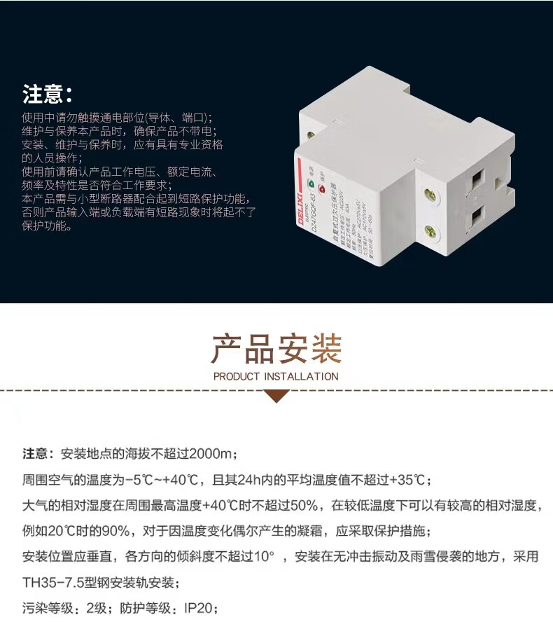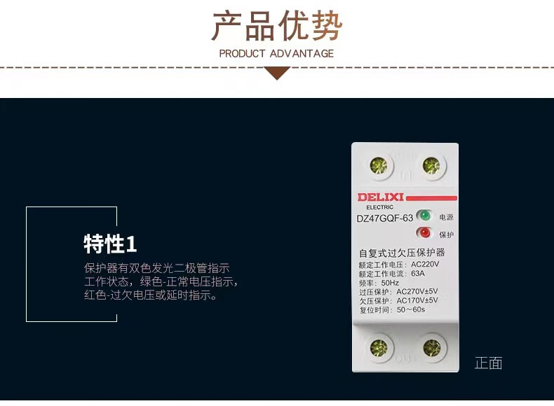 德力西(DELIXI)自复式过欠压保护器 DZ47GQF-63 2P40A 32A 家用延时保护器 63A 2P