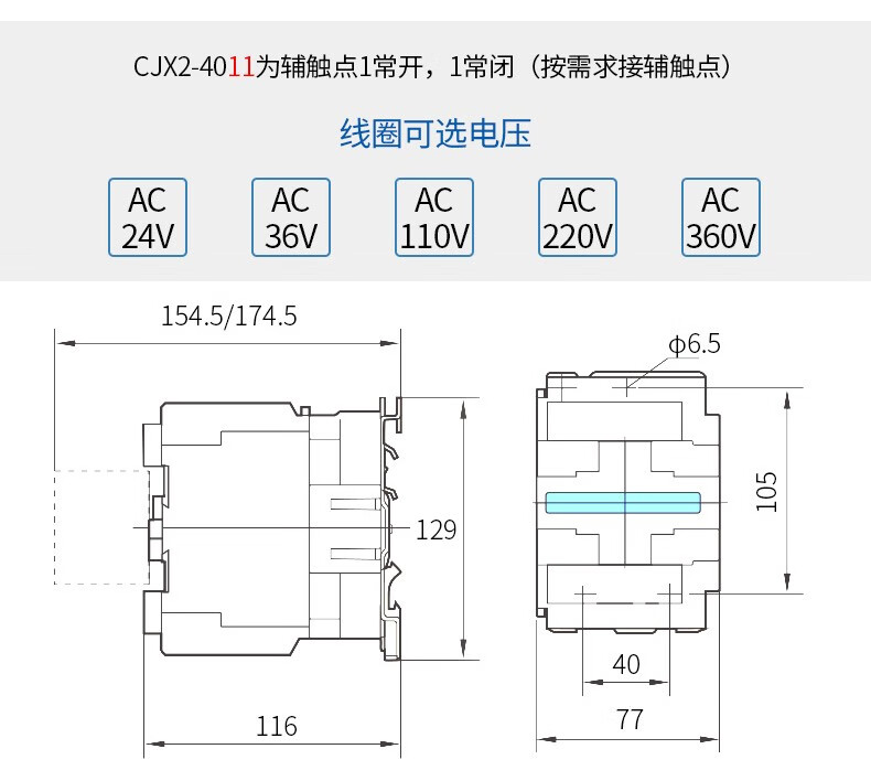 正泰(CHNT)接触器 正泰CJX2-4011交流接触器 接触式继电器 220V