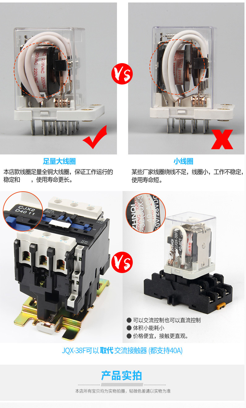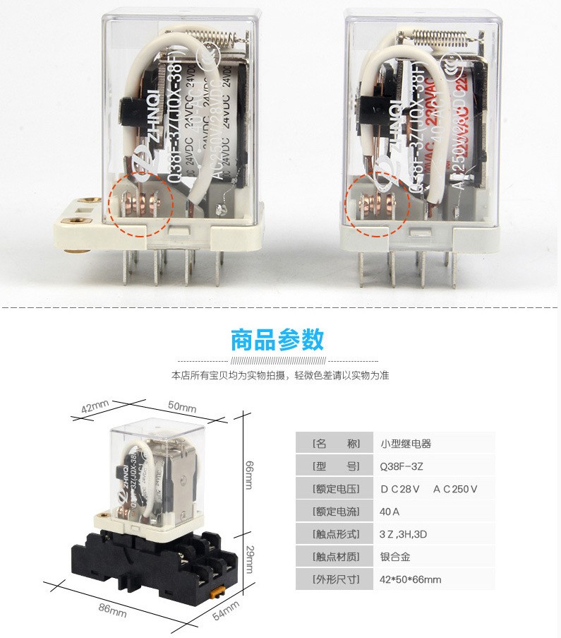 Relé intermedio Jigong JQX38F de alta potencia y alta corriente 40A con base AC 220/DC24/12V DC24V con base