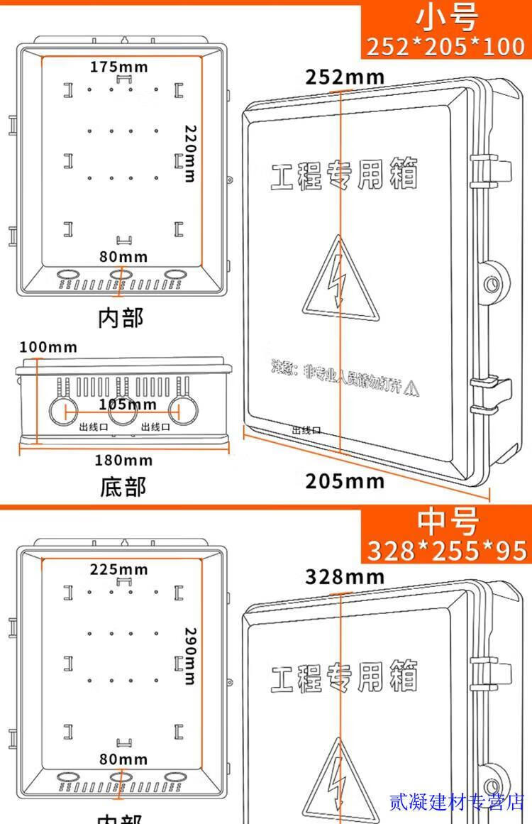 福西西大空间 防水箱监控弱电箱室外接线盒abs塑料防雨电源交换机路由器 小号(252*215*100)