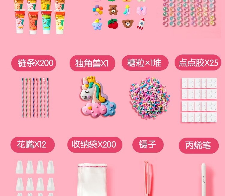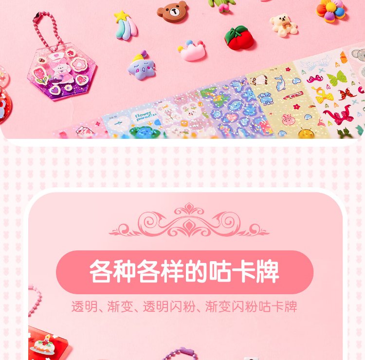 欣格奶油胶咕卡套装儿童玩具女孩礼物DIY手工挂件咕盘贴纸皮箱1138件