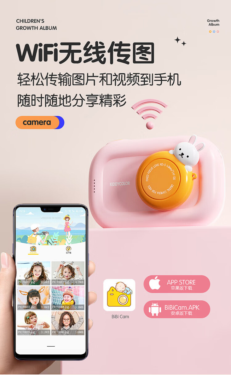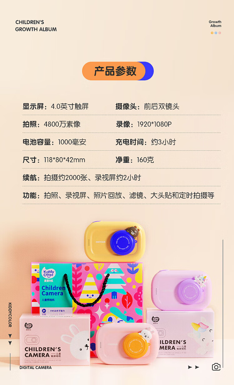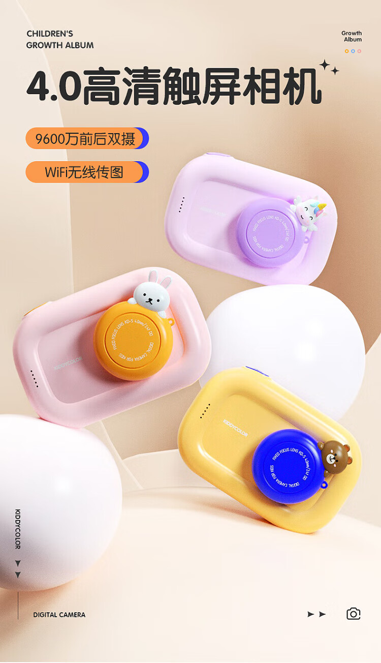 凯蒂卡乐(KIDDYCOLOR)儿童照相机数码相机双摄触屏WIFI传输ccd学生玩具女孩生日礼物