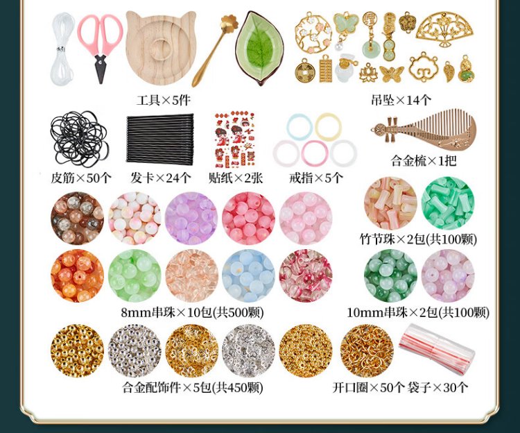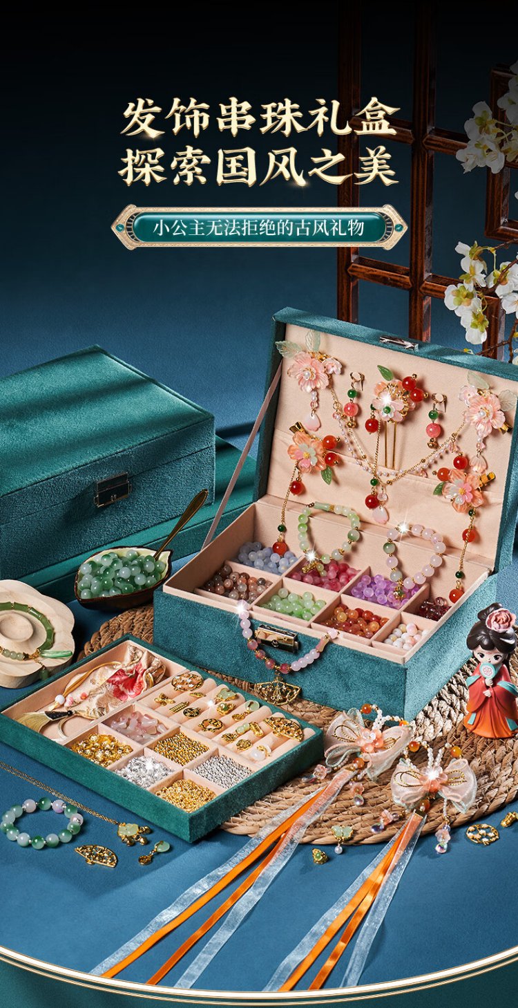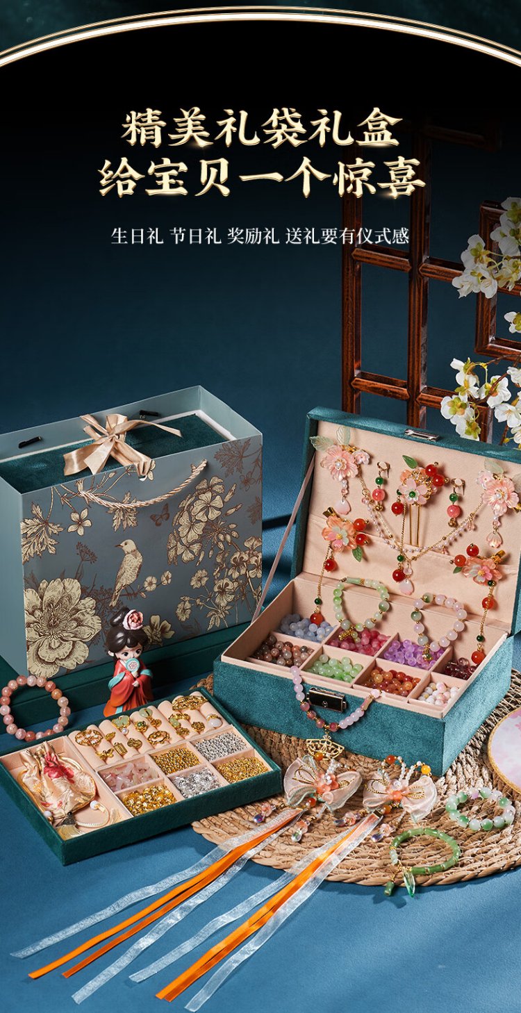 EagleStone儿童串珠发饰盒女孩生日礼物7-14岁古风首饰DIY玩具高档1111礼物