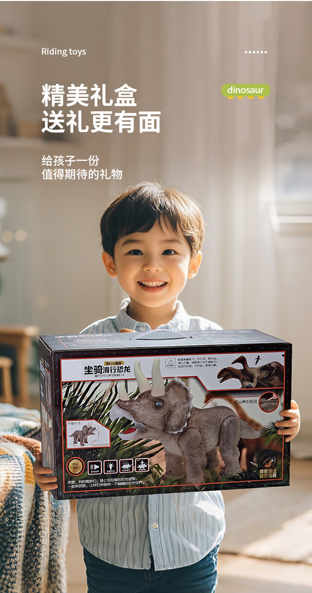 奥智嘉儿童玩具1-3岁特大号仿真可坐人电动声光恐龙玩具模型生日礼物