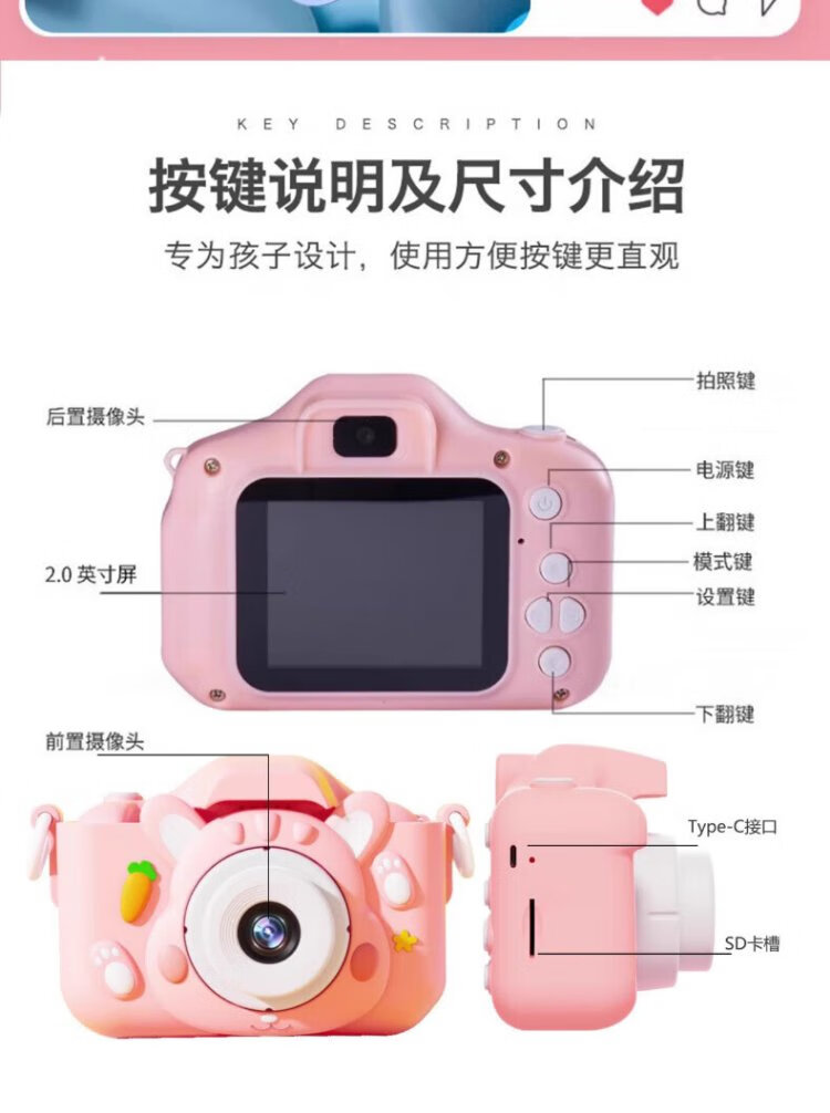 乐爱祥儿童照相机可打印高清迷你拍立得玩具4-6-10岁男孩女孩生日礼物