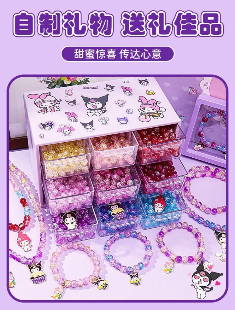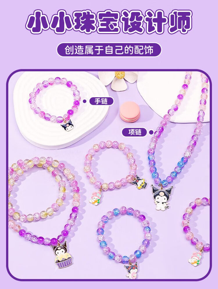 Le Aixiang – jouets pour enfants de 3 à 6 ans, Kuromi, bracelet fait à la main, bijoux en perles Sanrio, collier, cadeau d'anniversaire pour filles