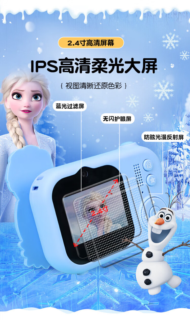 Appareil photo pour enfants Disney, cadeau d'anniversaire pour petite fille, jouet princesse Elsa, éducatif haut de gamme pour enfants de 3 à 6 ans, 4 protections des yeux