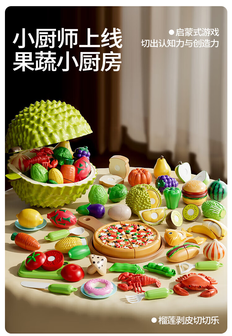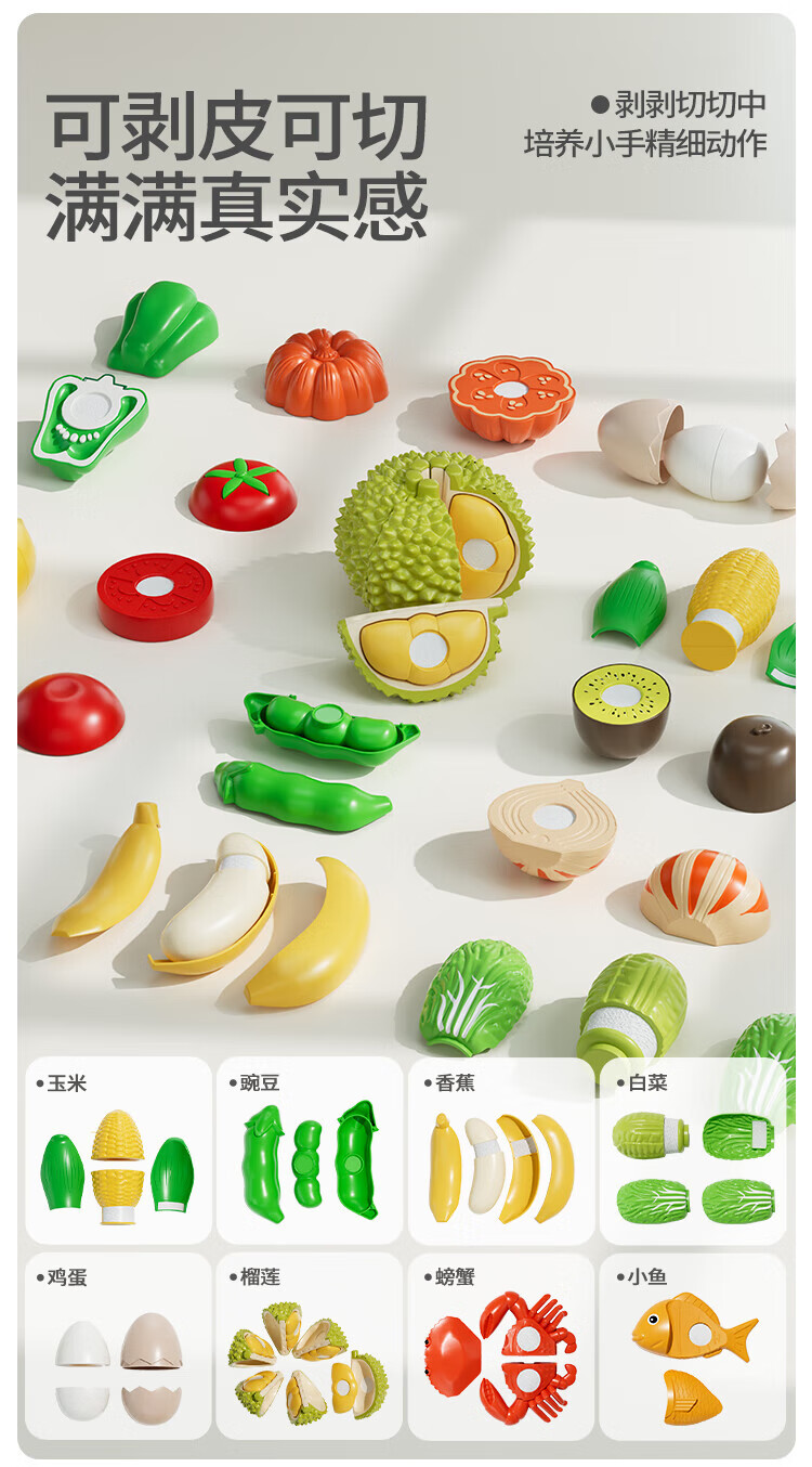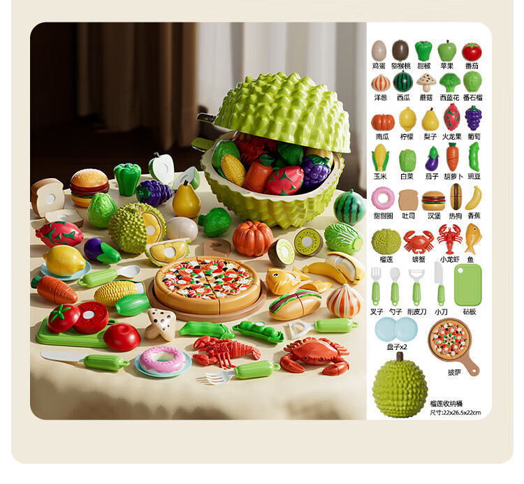 Newqi children's fruit cut and peel peeling fruit and vegetable simulation durian infant and toddler kitchen cooking girl toy birthday gift