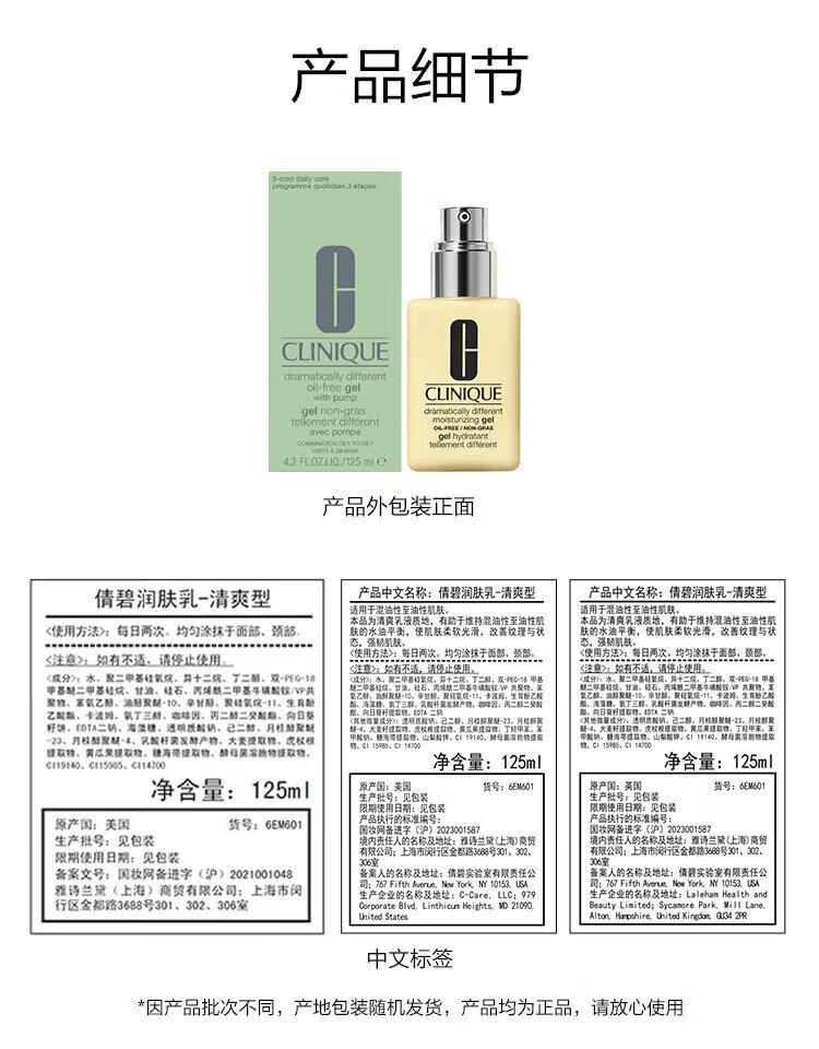 倩碧混皮黄油125ml无油清爽型乳液面霜敏感肌护肤品生日礼物送女友