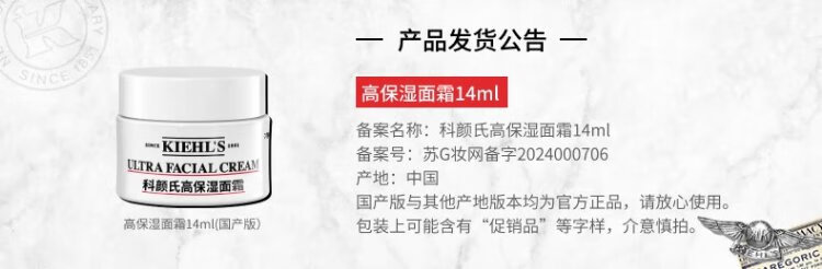 科颜氏(Kiehl's)全新第三代高保湿面霜125ml补水保湿护肤 生日礼物