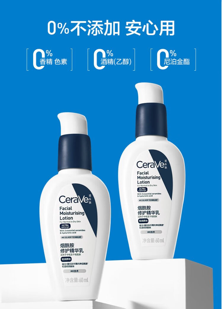 适乐肤(CeraVe)熬夜修护PM乳60ml(烟酰胺提亮补水保湿乳液面霜敏感肌男女护肤品)
