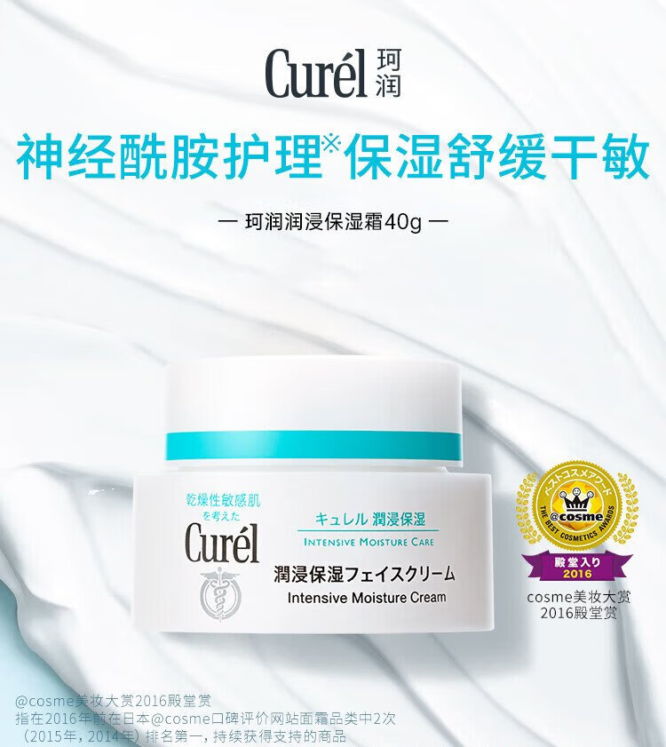 珂润(curel)  润浸保湿滋润乳霜 40g 神经酰胺护理 补水乳液面霜