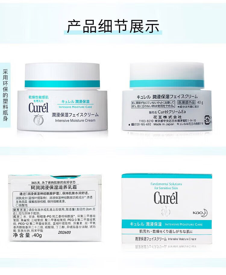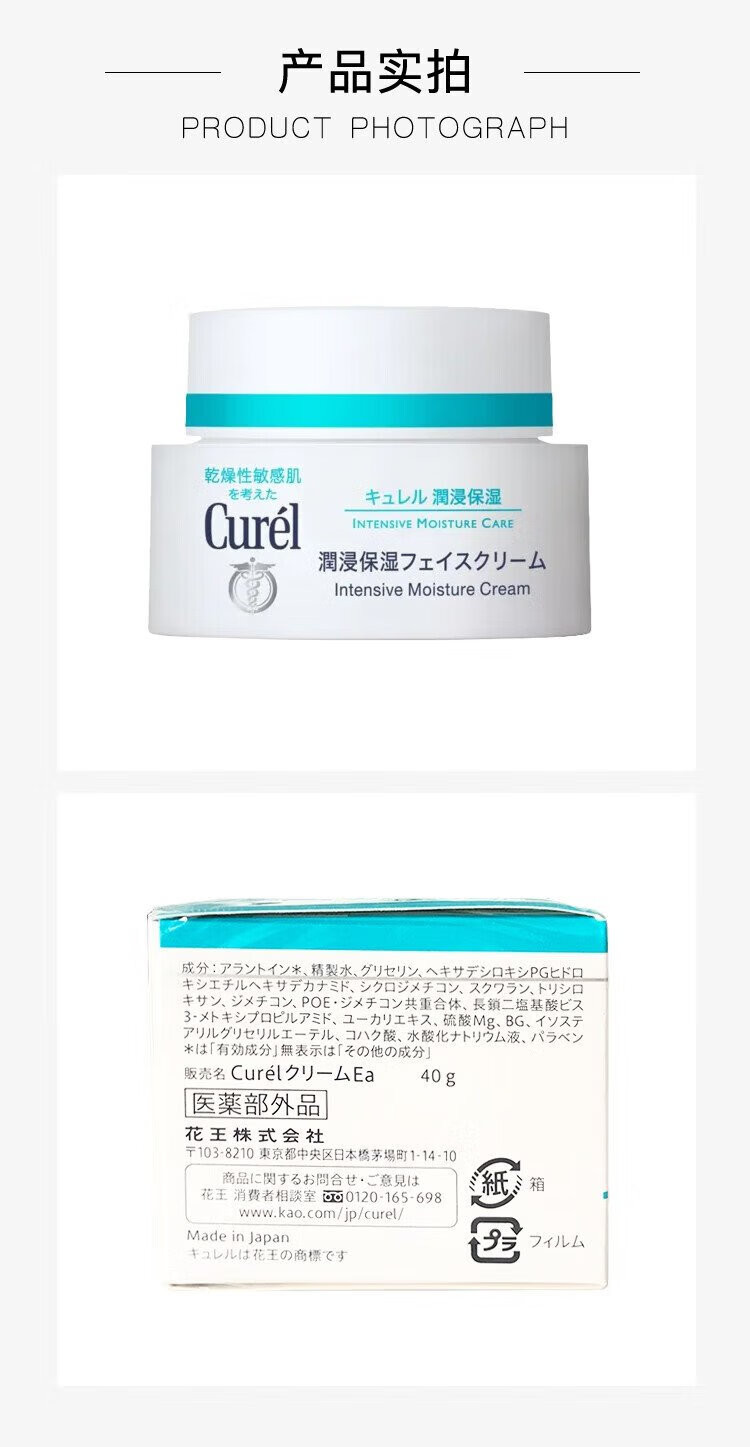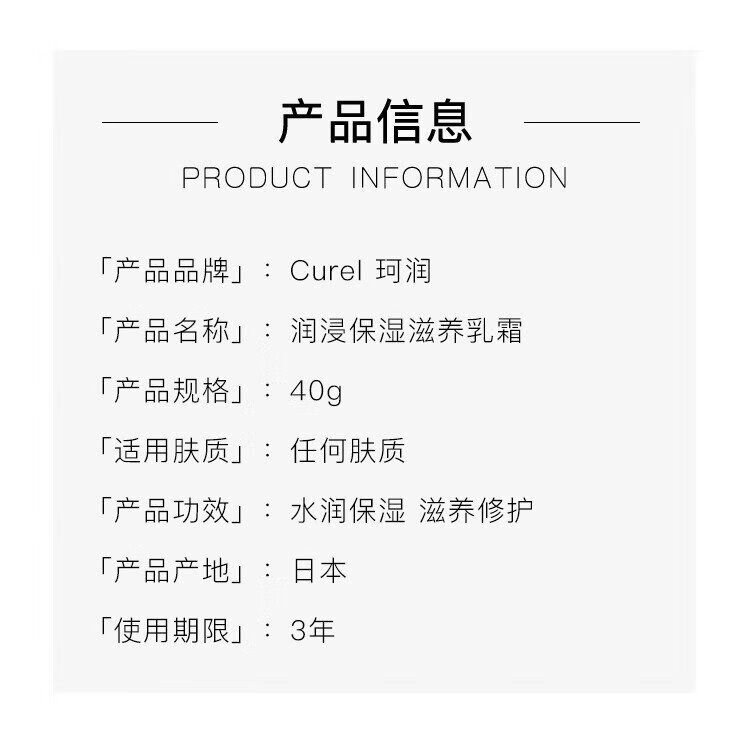 珂润(curel) 润浸保湿滋润乳霜 40g 神经酰胺护理 补水乳液面霜