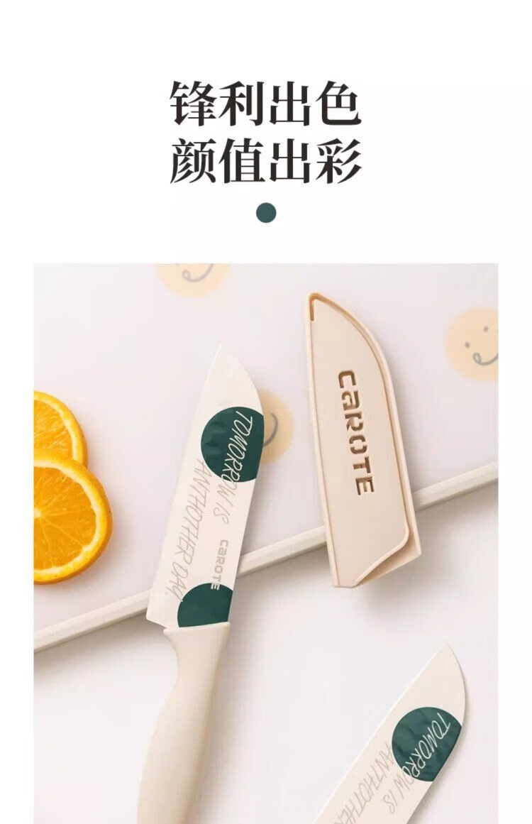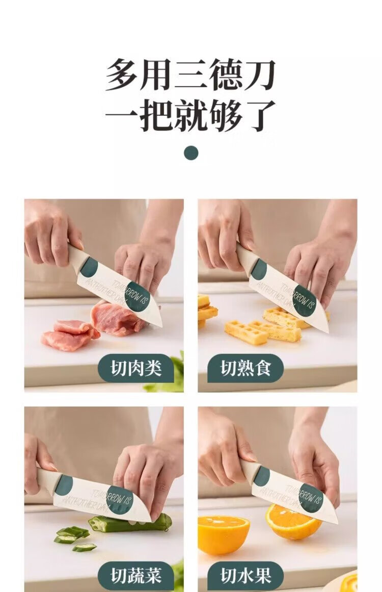 卡罗特不锈钢水果刀切菜刀家用辅食刀具厨房切片刀厨师专用三德刀 蓝色