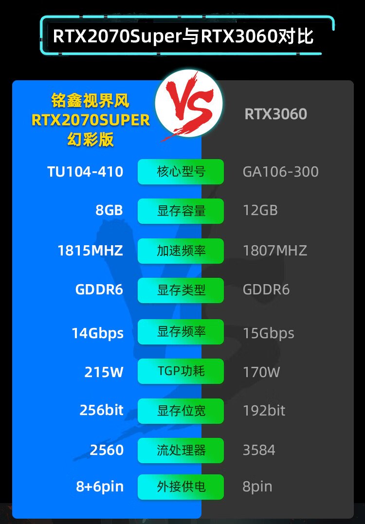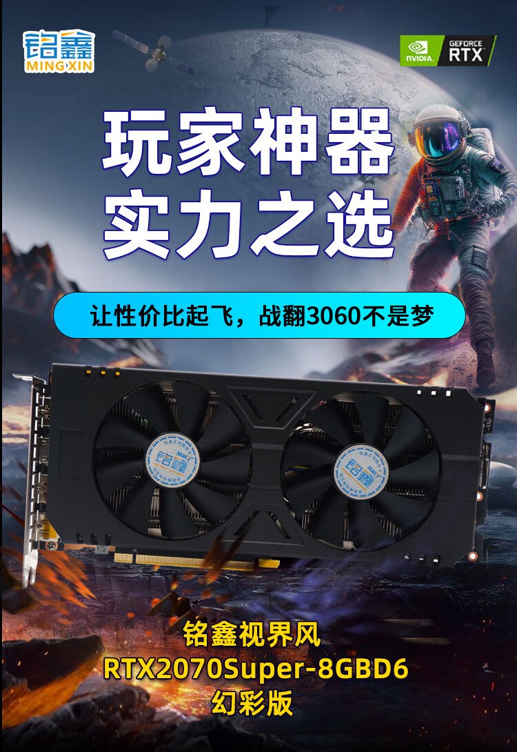 铭鑫RTX2070SUPER吃鸡显卡/台式机/N卡/电竞/绘图/设计/独立显卡/8G显存/光追升级/科学运算/3A游戏 RTX2070SUPER幻彩版 8GBD6-双风扇