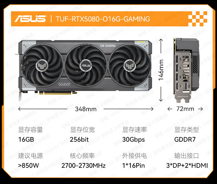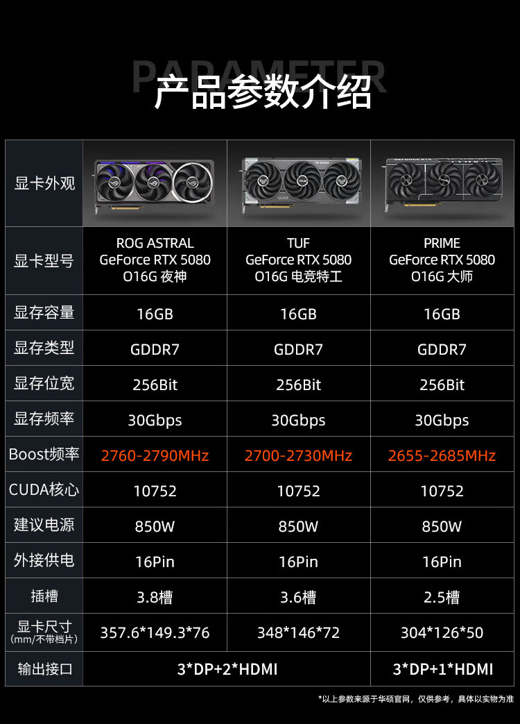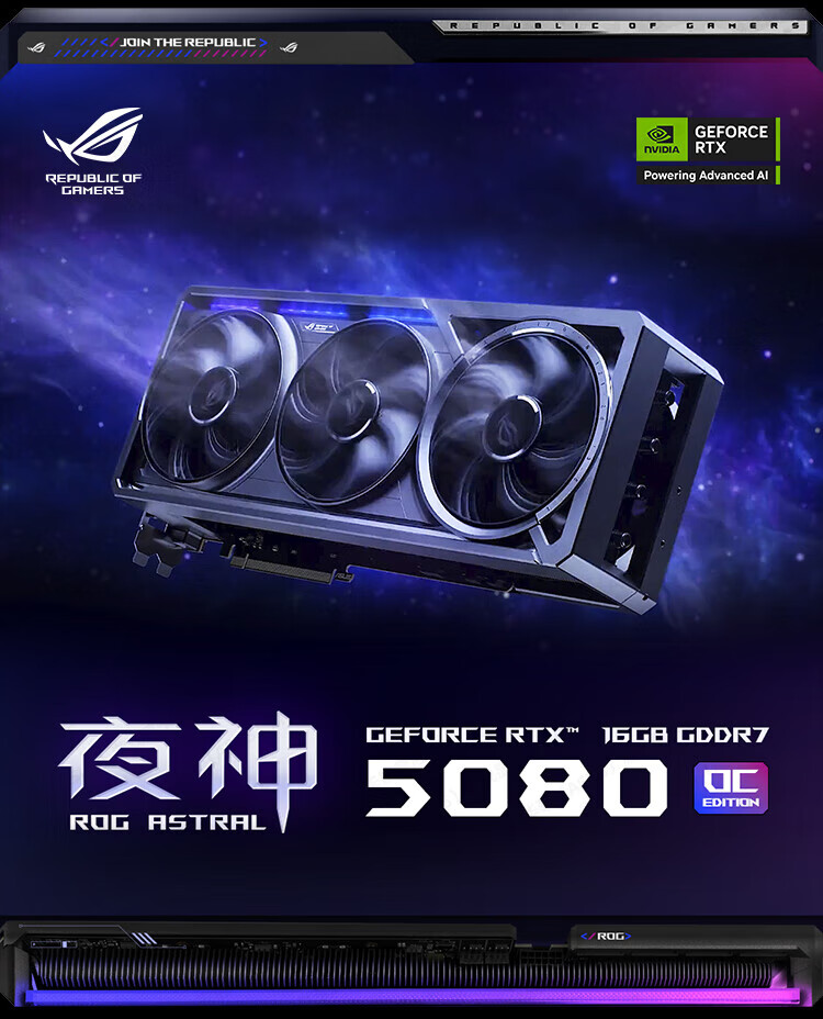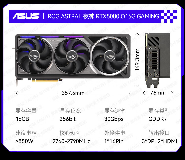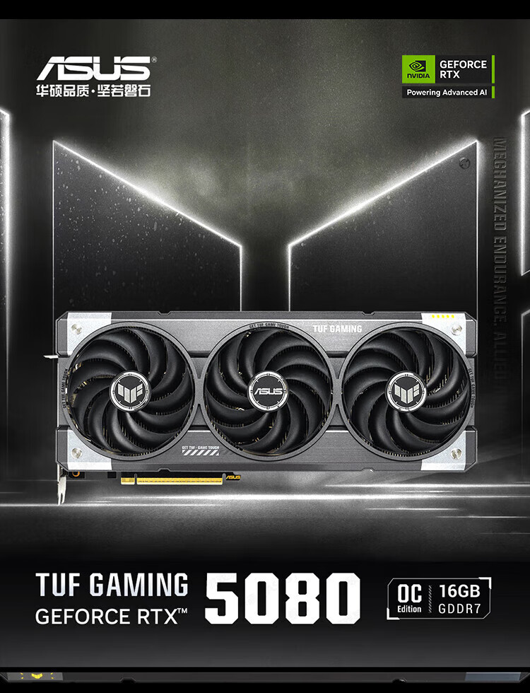 华硕TUF/ROG猛禽夜神RTX5080-16G台式电脑主机高端显卡3A游戏高端AI渲染设计专业独立显卡 ROG-ASTRAL-RTX5080-O16G夜神