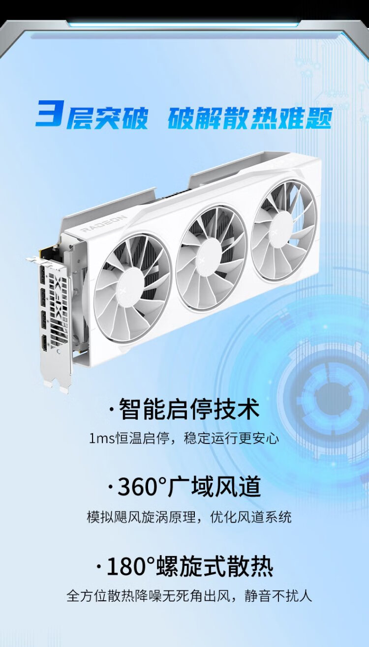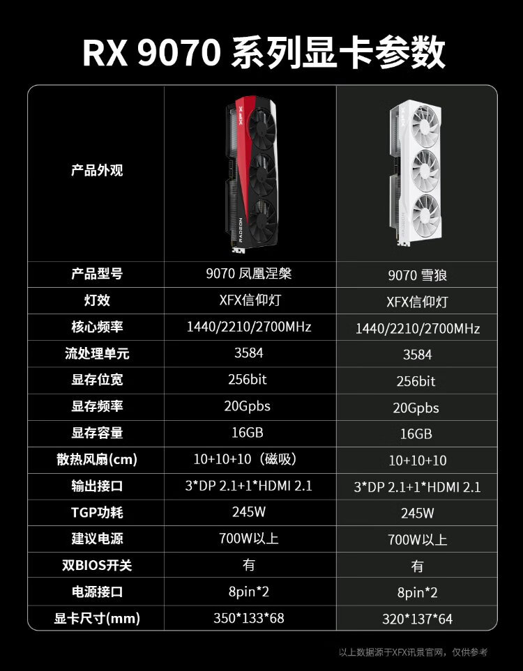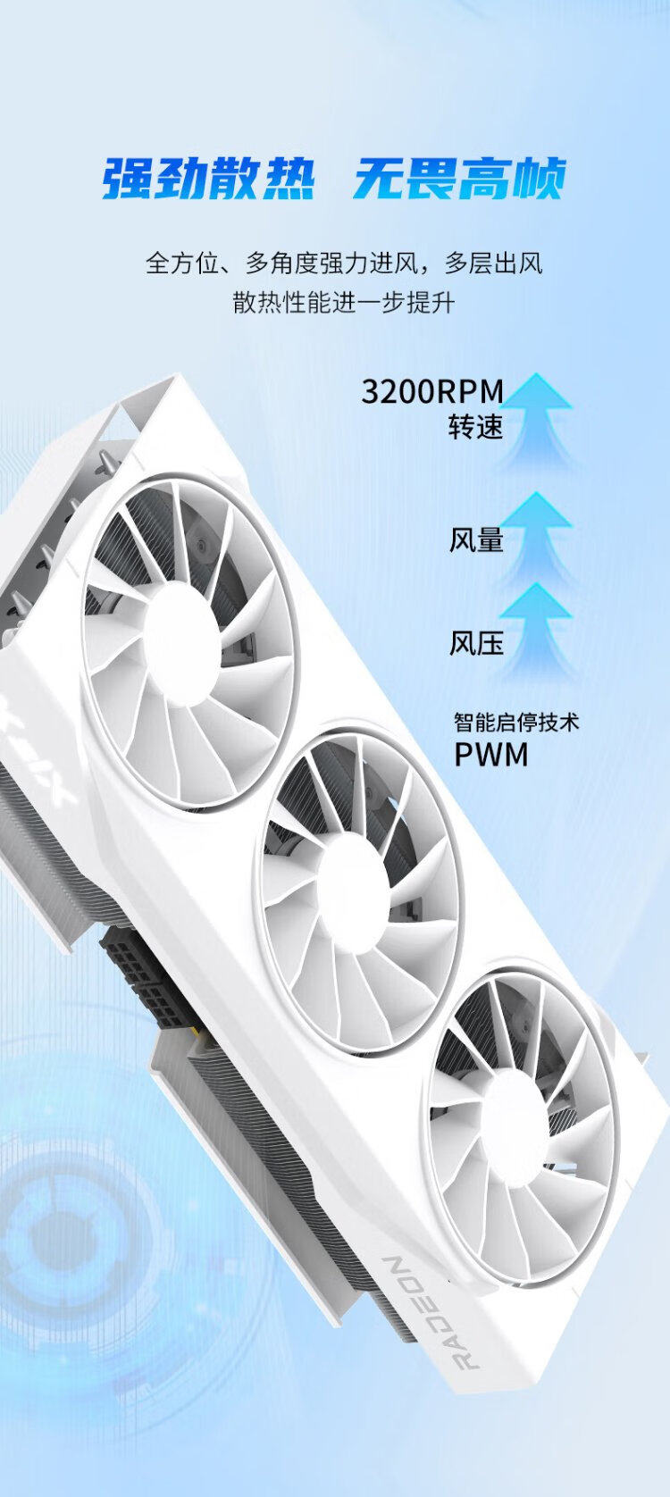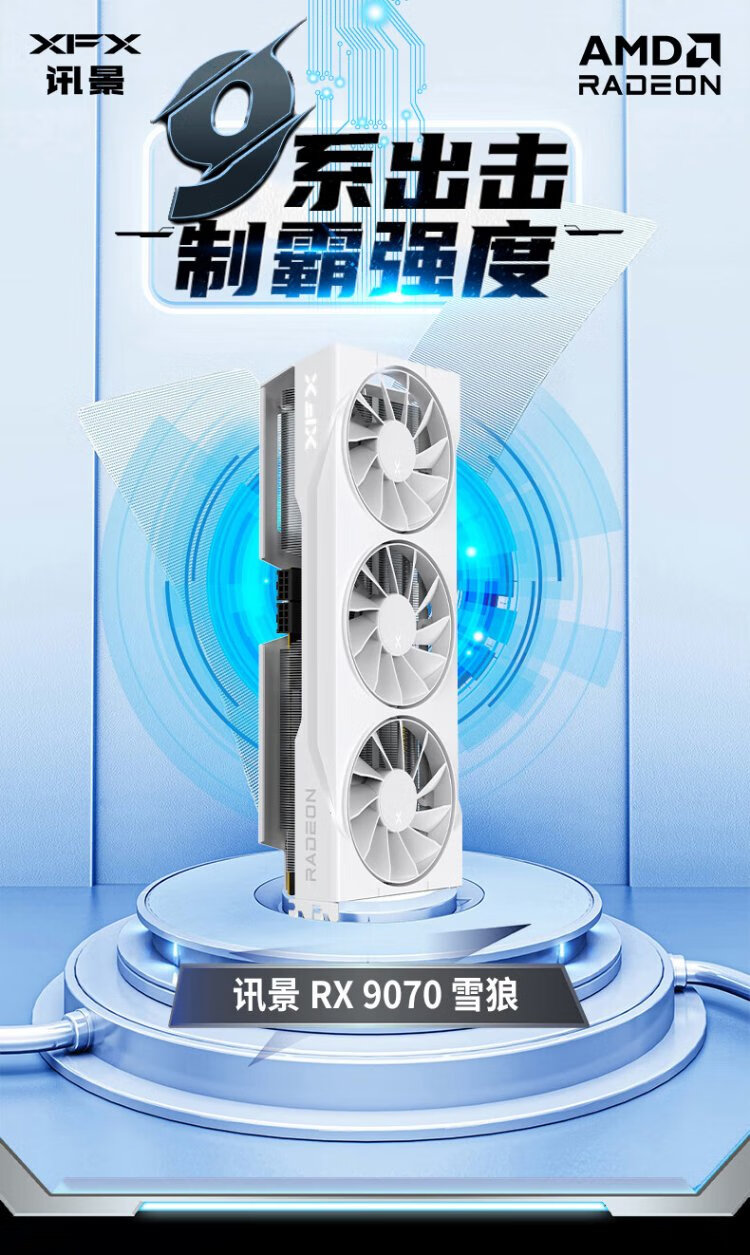 讯景(XFX)AMD RADEON RX 9070 雪狼 16GB 白色 全新电竞游戏设计智能学习台式电脑独立显卡 RX9070雪狼