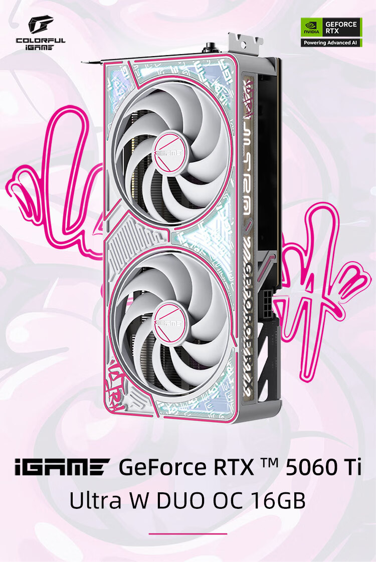 Coloré iGame RTX 5060Ti Ultra AD Tomahawk Deluxe Edition 16 Go carte graphique jeu d'ordinateur e-sports diffusion en direct conception AI DLSS4 jeu en ligne 3A clip vidéo RTX5060Ti U W DUO OC 16 Go