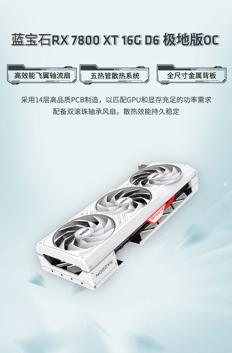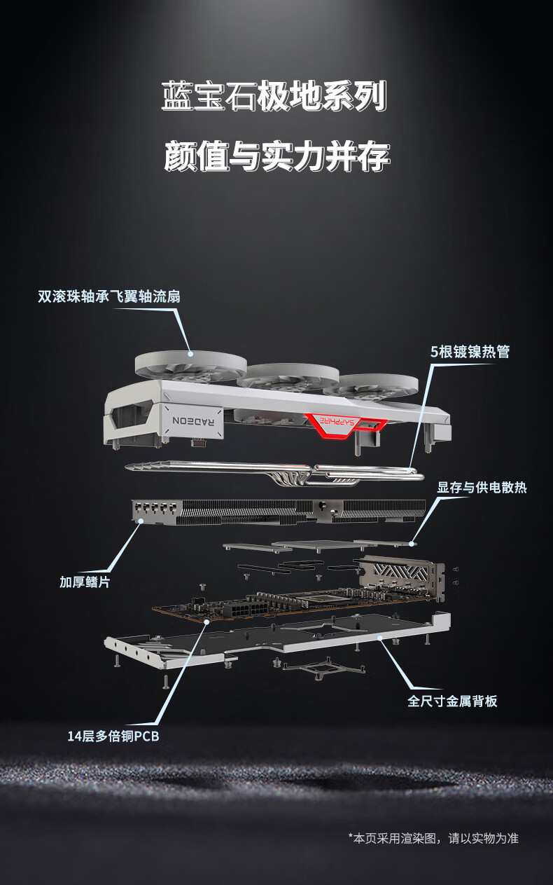 蓝宝石AMD RX 7800 XT/9070GRE台式机电脑黑神话悟空游戏 deepseek人工智能Ai绘画设计渲染台式电脑显卡 RX 9070GRE 12G极地