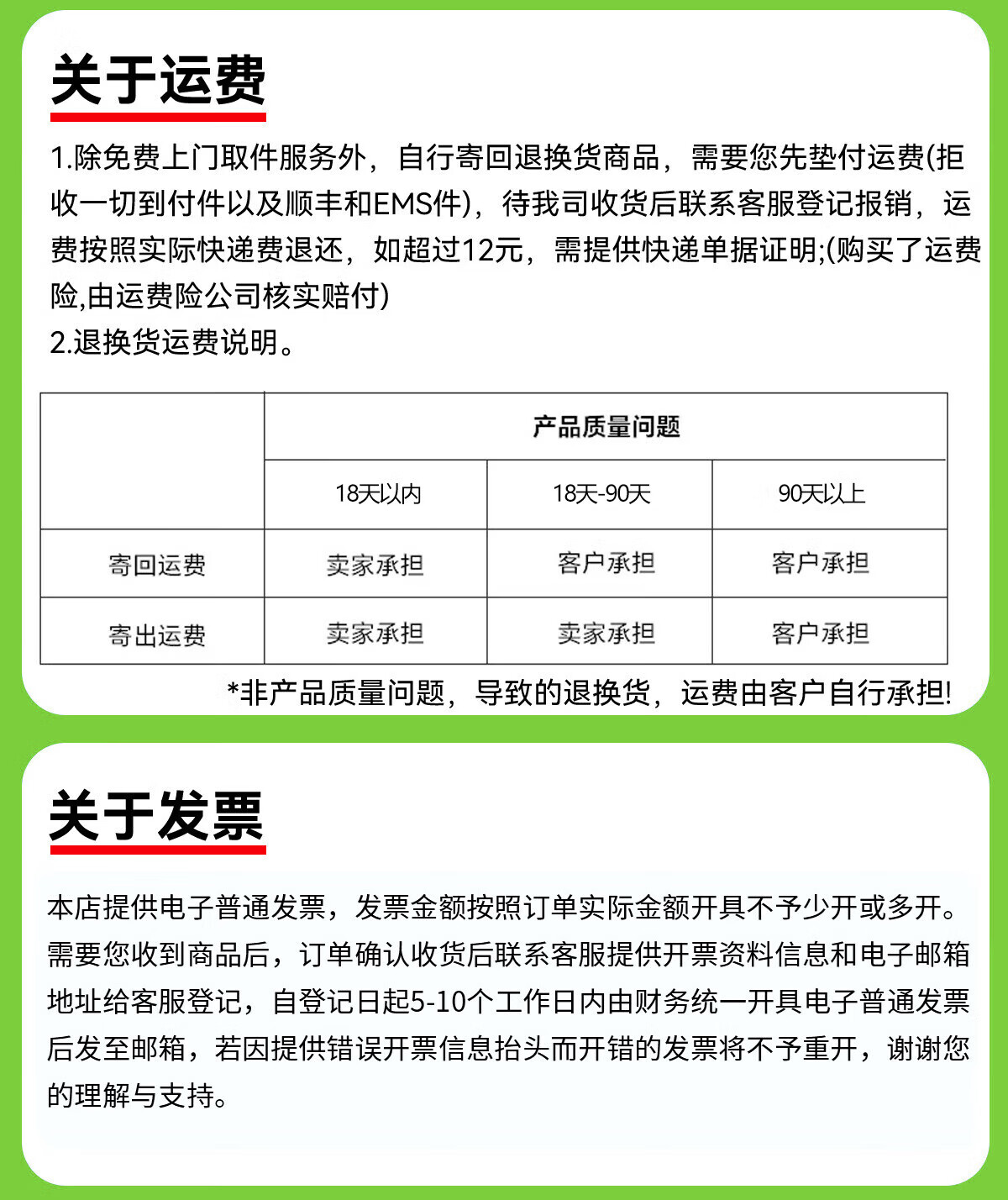 2)Les frais de port sont normalement facturés par tranche de 0,5KG. Donc, si vous achetez un produit qui ne pèse que 0,1KG, vous pourriez envisager d'acheter 2-3 PCS à la fois, ce qui n'ajoutera pas plus de frais de port à votre commande.