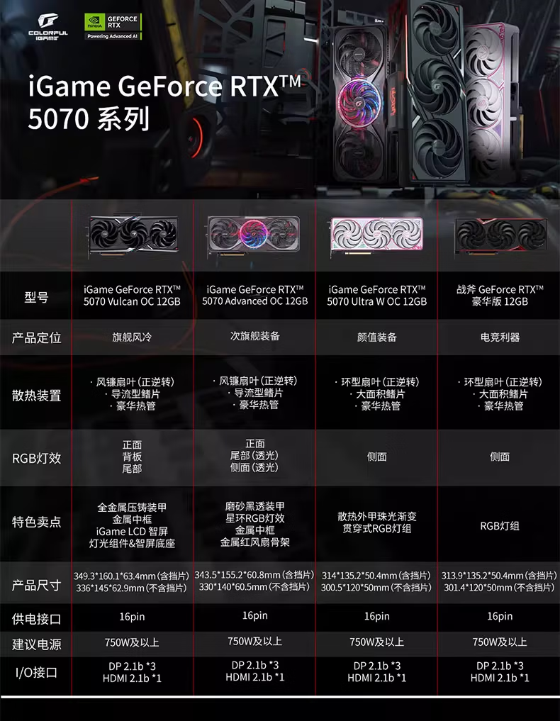 七彩虹RTX5070战斧/银鲨/火神 电脑独立显卡电竞游戏娱乐电脑组件显卡 七彩虹5070Ultra W Oc12GB