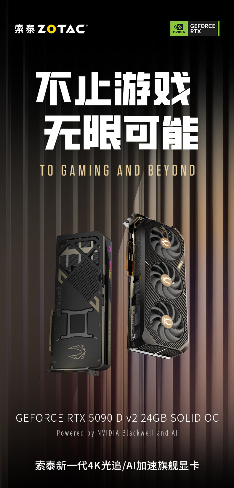 索泰【6期免息】GeForce RTX 5090D v2 24G 台式独立游戏电竞deepseek人工智能 50系首发DLSS4 RTX 5090D V2 24G SOLID OC