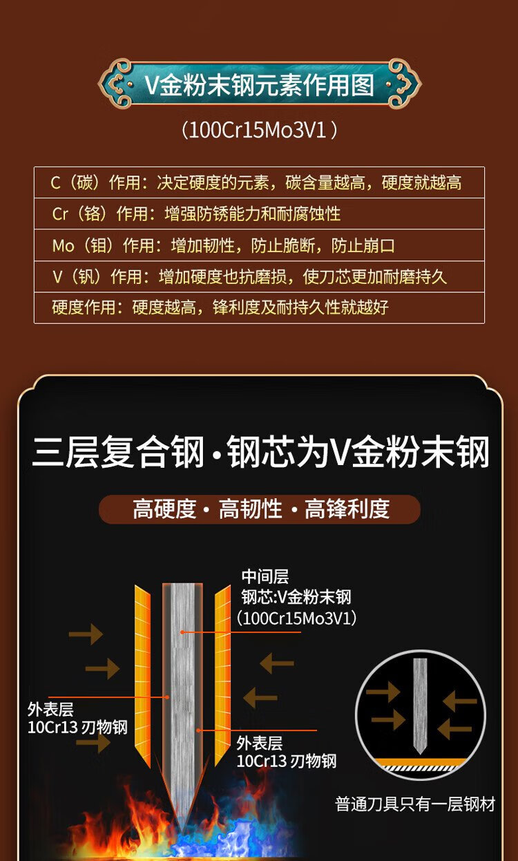 SMARTWIFE Household Kitchen Knife Kitchen Stainless Steel Chopping Knife Chef's Knife Meat Slicing Knife V Gold Series Lingfeng Slicing Knife