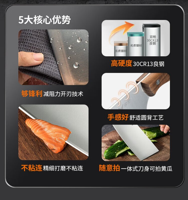 Double gun household kitchen knife slicing knife sharp forged kitchen meat and vegetable cutting stainless steel knife