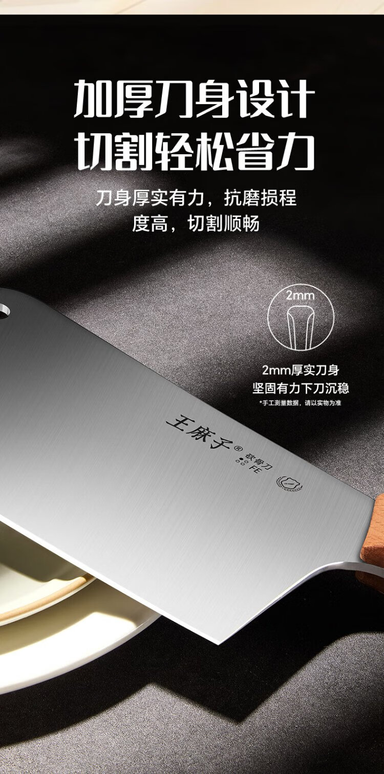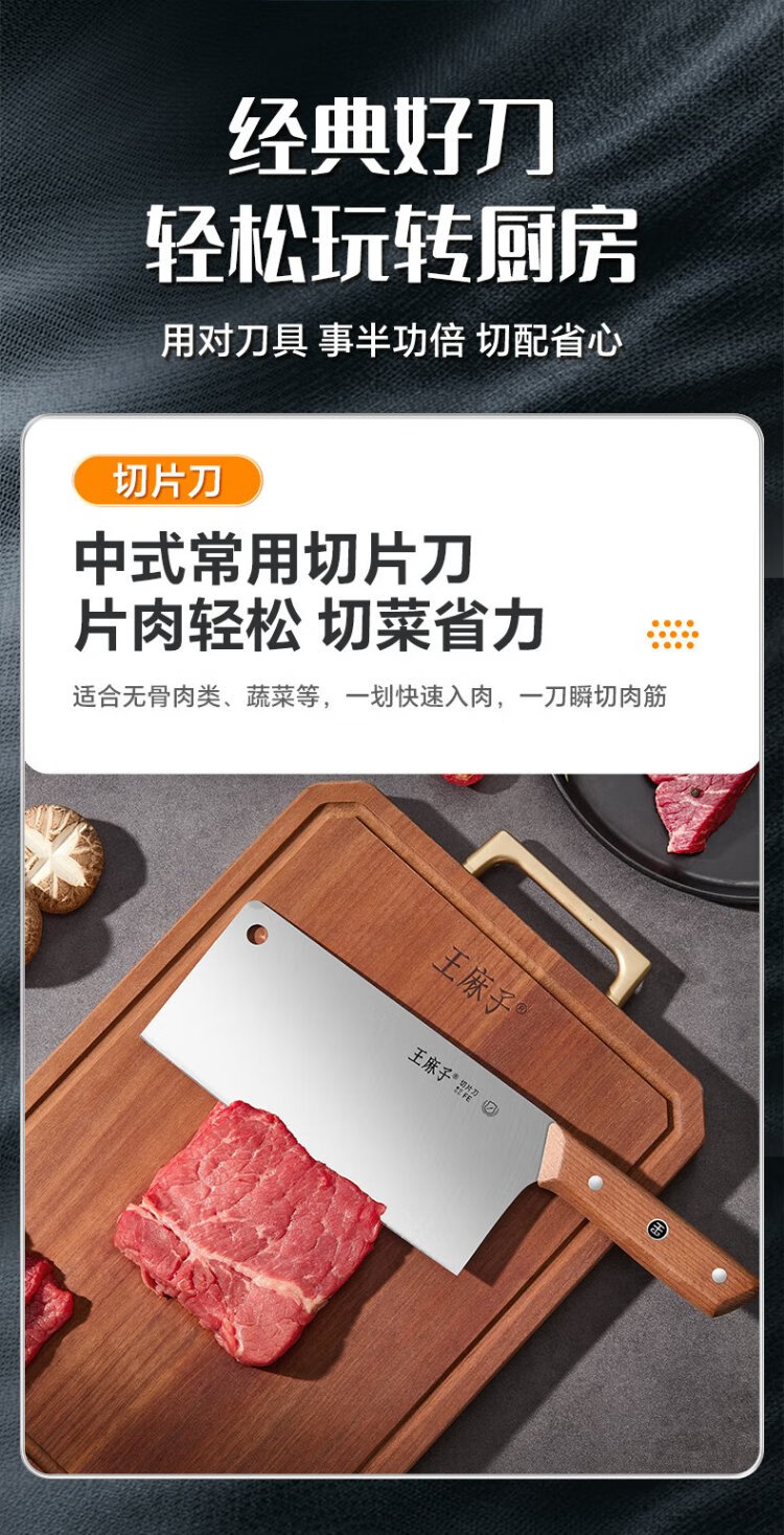 王麻子菜刀京东自营刀具家用切菜刀不锈钢切片刀厨师专用刀切肉刀厨房刀