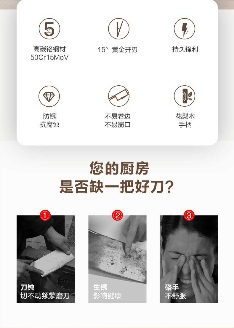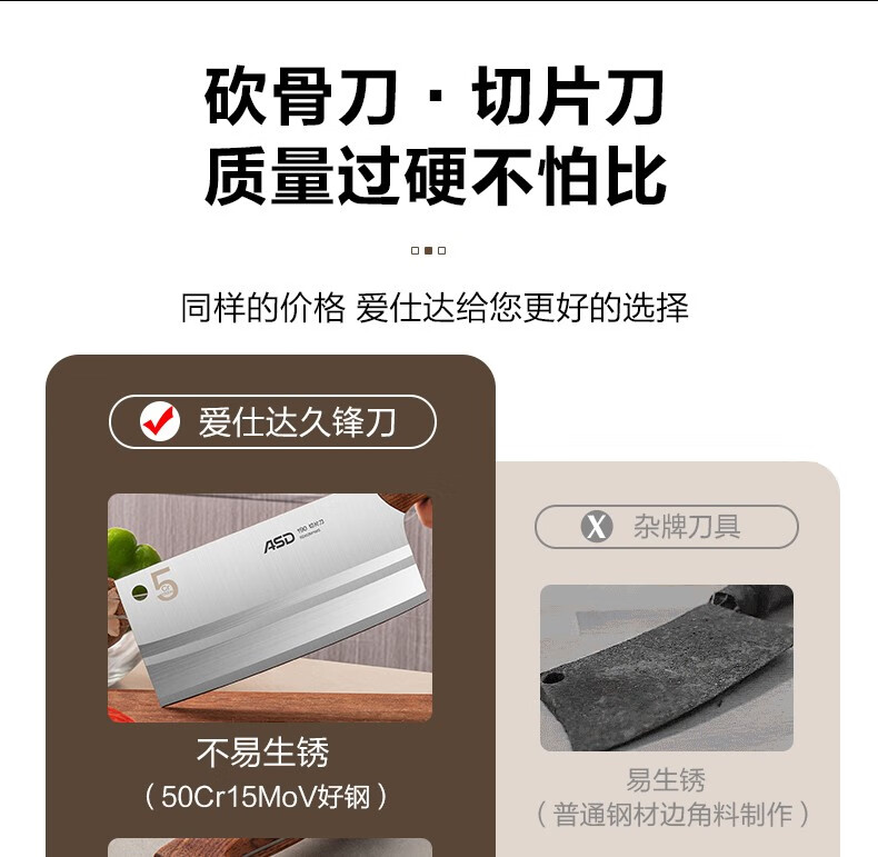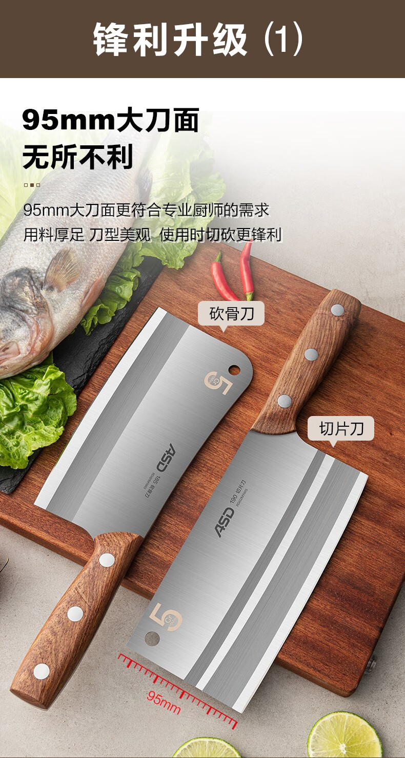 爱仕达(ASD) 菜刀切片刀骨刀不锈钢厨房家用斩切持久锋利耐用刀具 花梨木手柄 185mm 砍骨刀