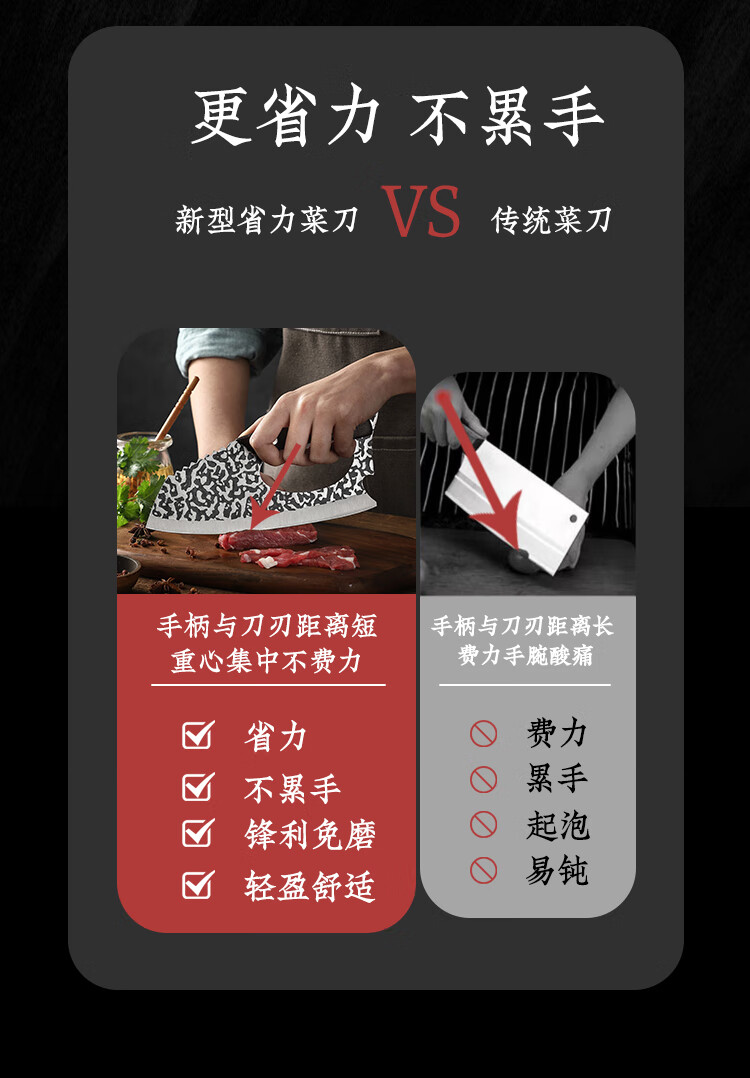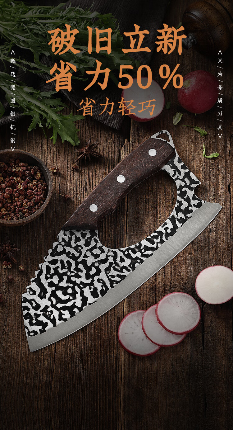 Couteau de cuisine forgé à la main, permettant d'économiser du travail, couteau à trancher ultra-rapide, cuisine domestique en acier inoxydable, couperet à viande léger pour femmes 1 pièce