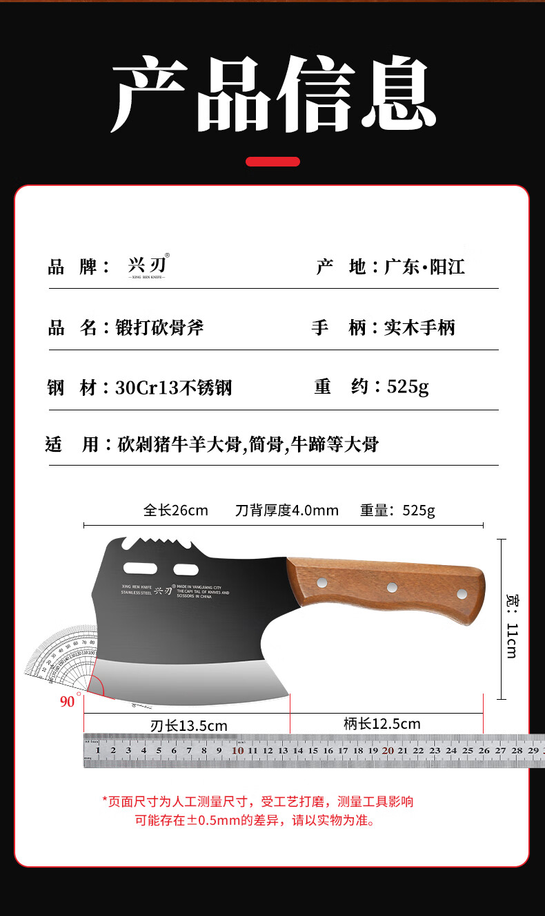 Xing blade special knife for chopping bones, household bone chopping knife, butcher's commercial ax bone chopping knife, large bone knife for chopping cattle, butchering knife, special bone chopping knife