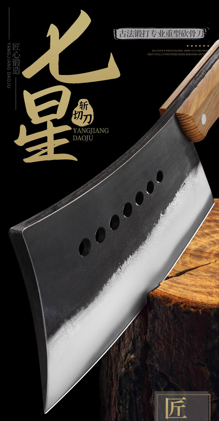 Couteau à sept étoiles épais fait à la main, couteau à découper spécial de boucher pour hacher les gros os Couteau à découper les os à sept étoiles de 2,0 mm d'épaisseur