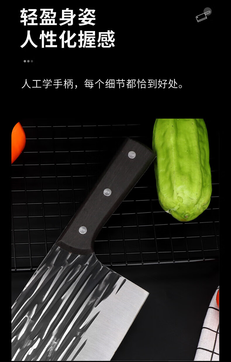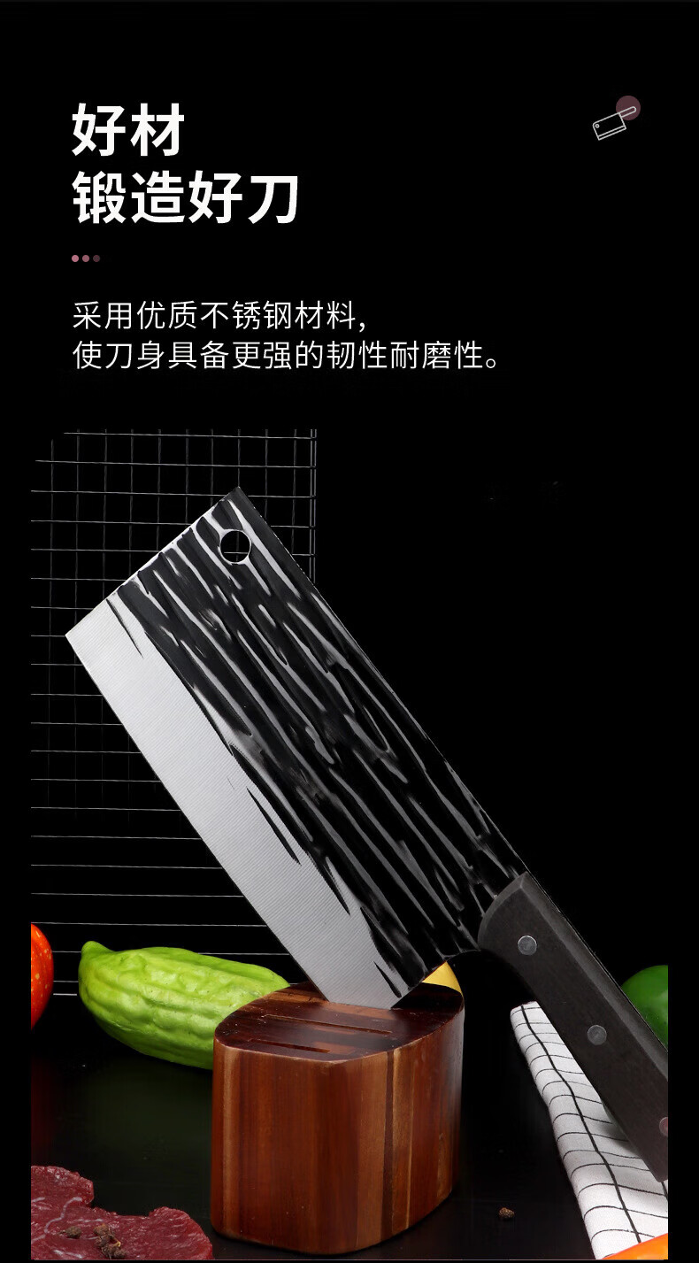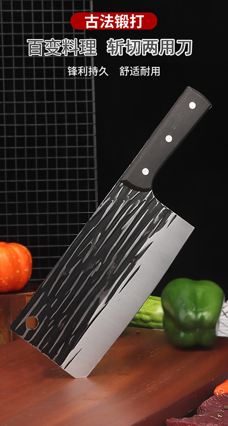 Jingxiaochu Messer aus geschmiedetem Stahl, Küchenmesser, einfach zu verwenden zum Schneiden von Fleisch, scharf und schnell, Kochmesser für den Heimgebrauch zum Schneiden von Fischfilets, 1 schwarzes Küchenmesser