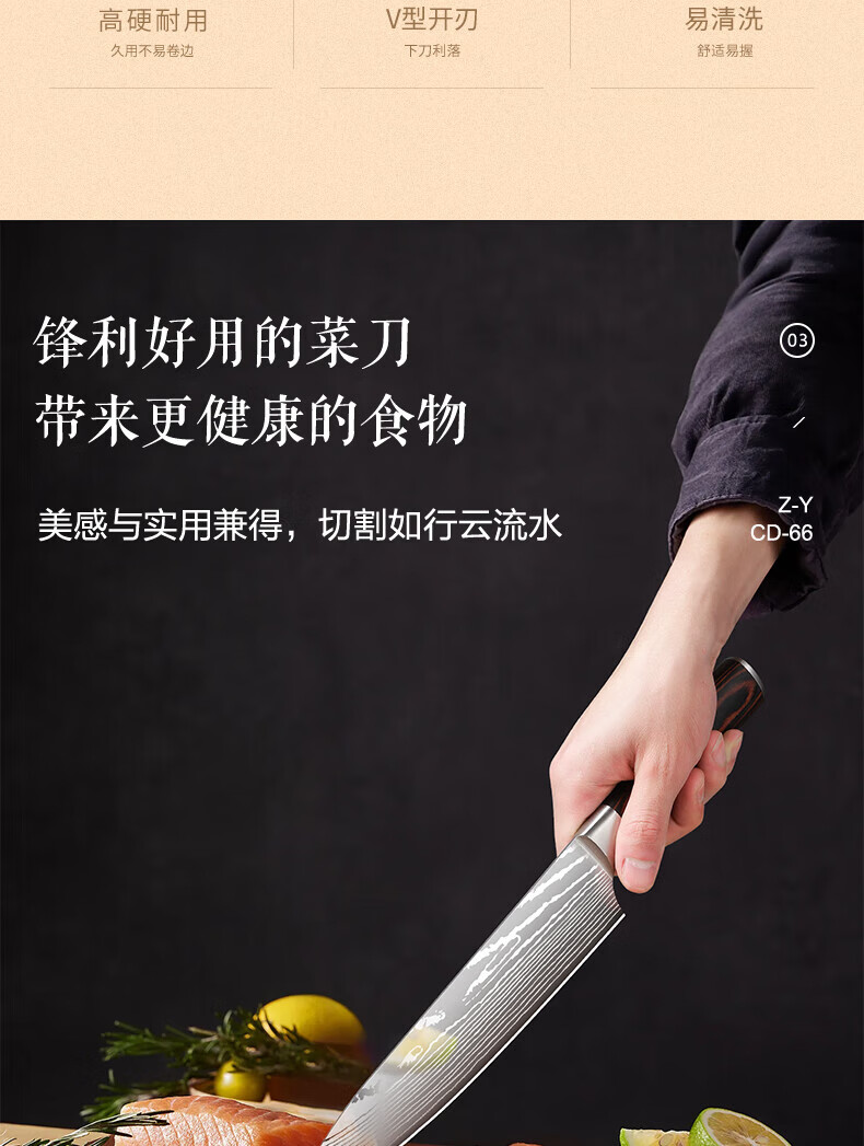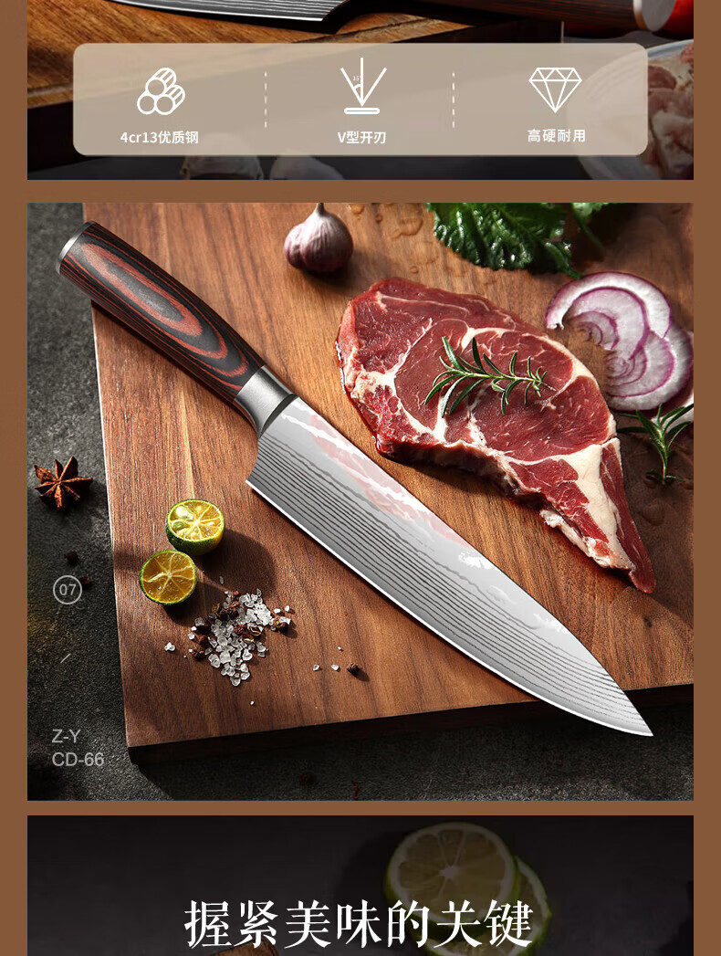 Xiaotianlai Damascus pattern steel knife household kitchen knife slicing knife fruit knife stainless steel multi-functional chef knife sashimi knife Damascus pattern chef knife