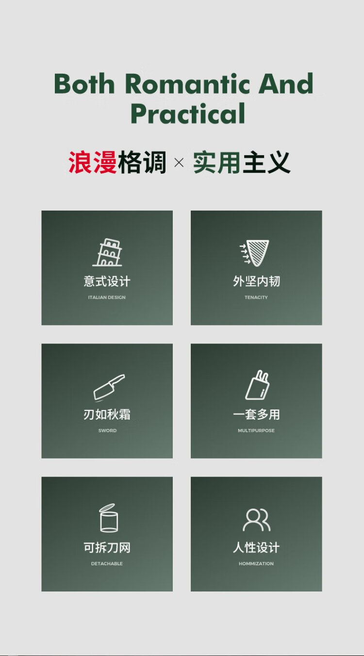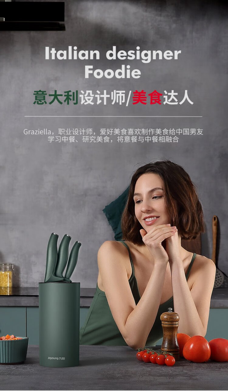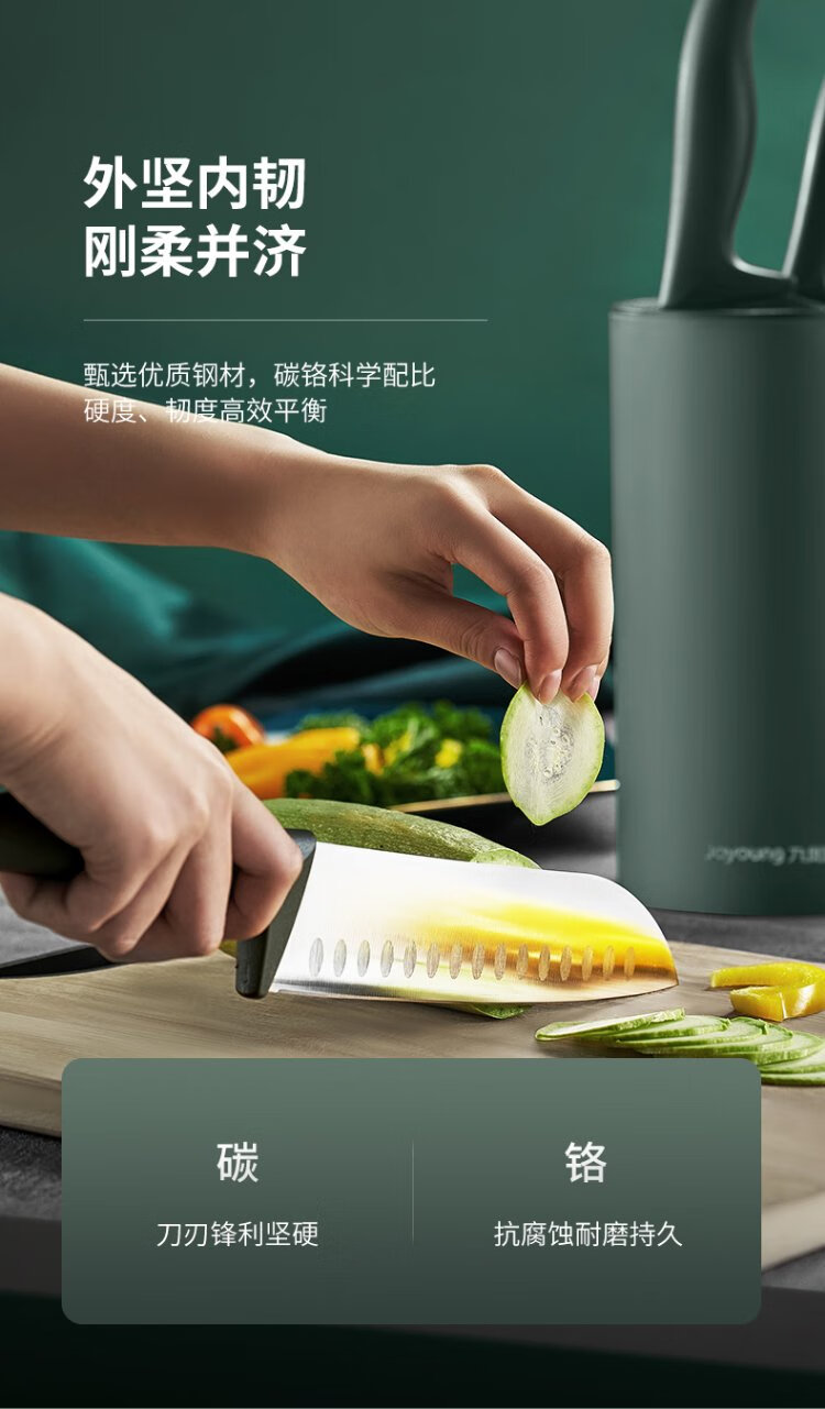九阳(Joyoung)刀具套装切菜刀厨房家用切肉刀切片刀水果刀刀座四件套T0163