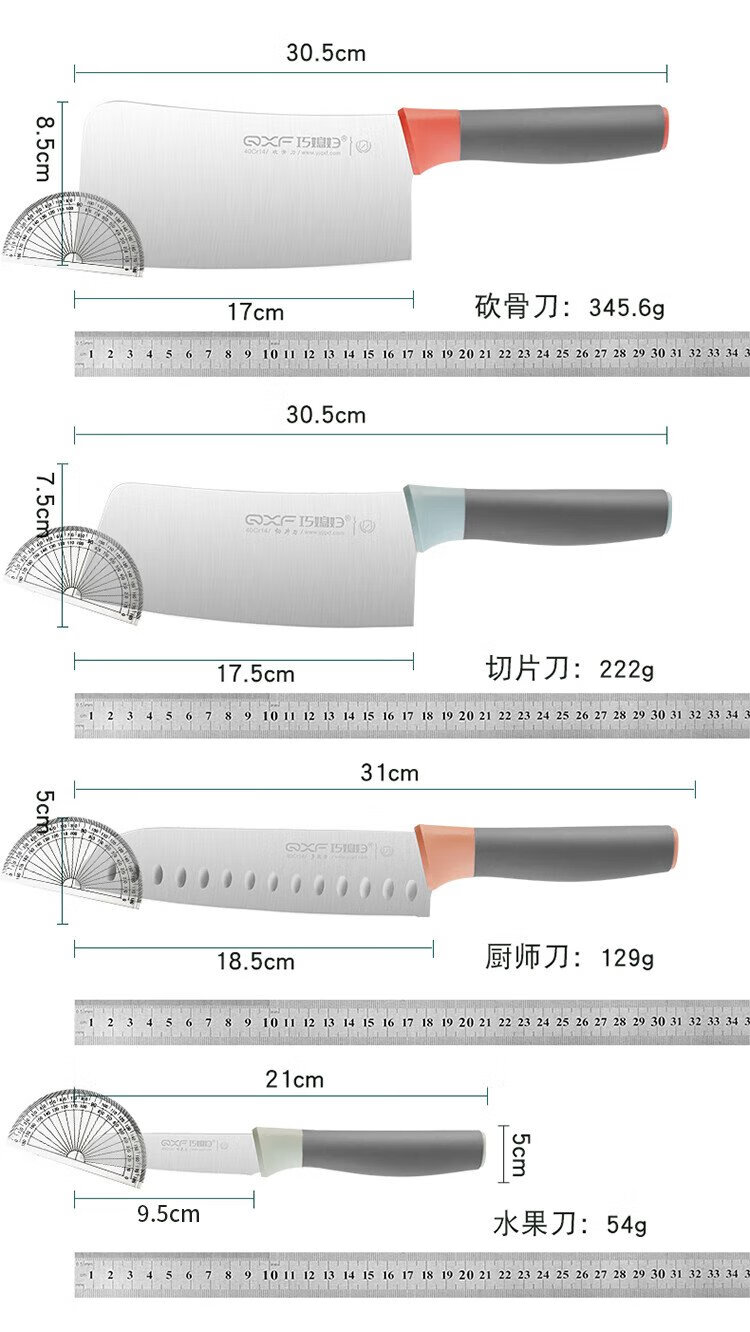 SMARTWIFE ten-piece knife set kitchen knife household knife chopping board multifunctional combination kitchen knife set white