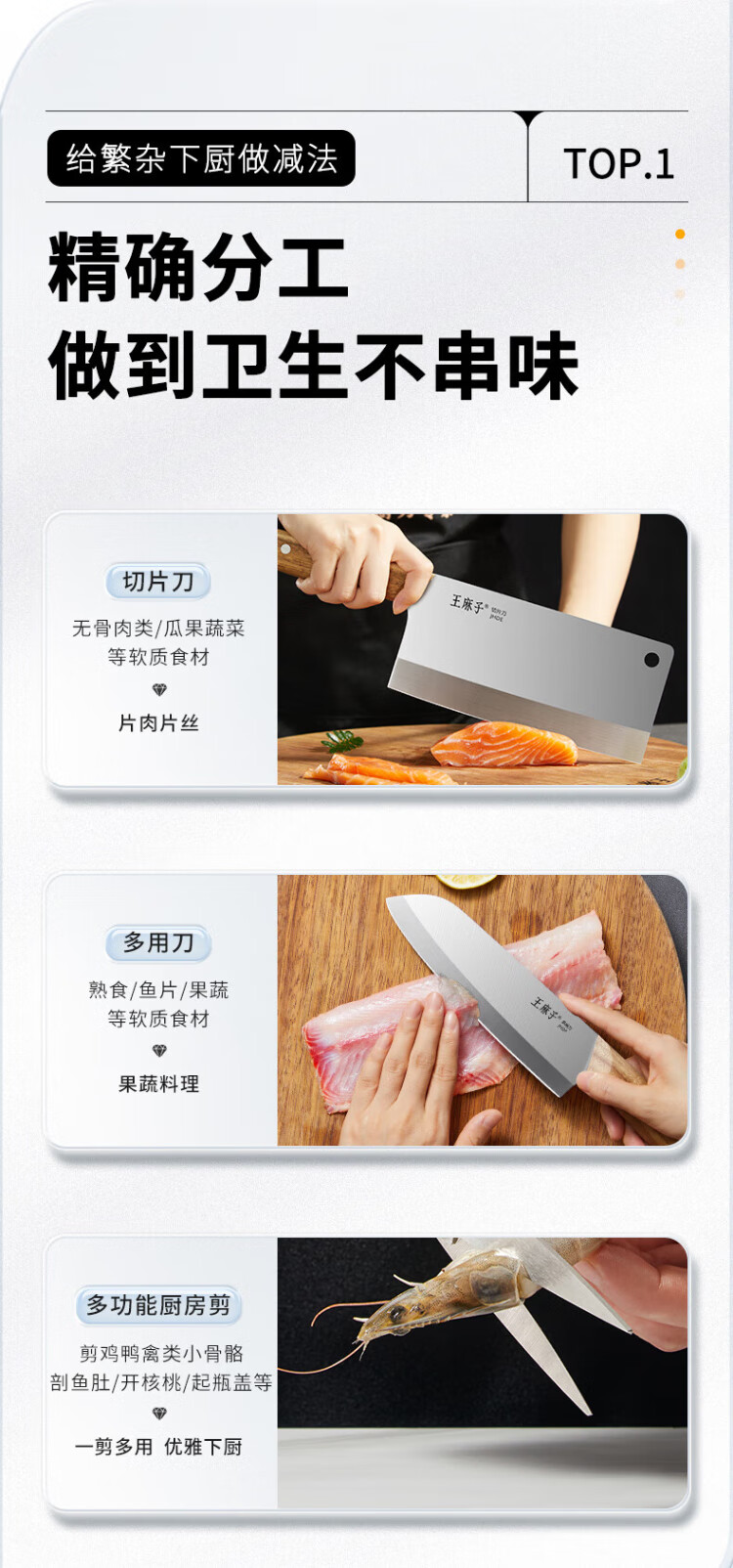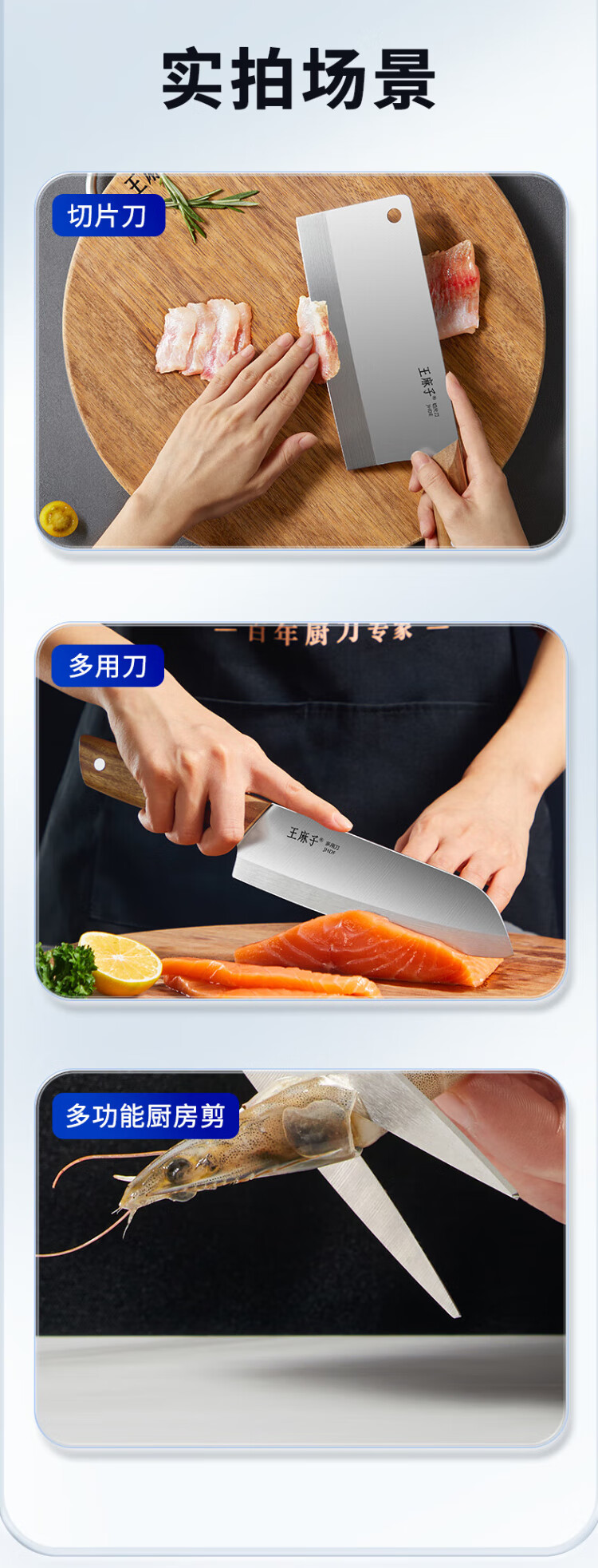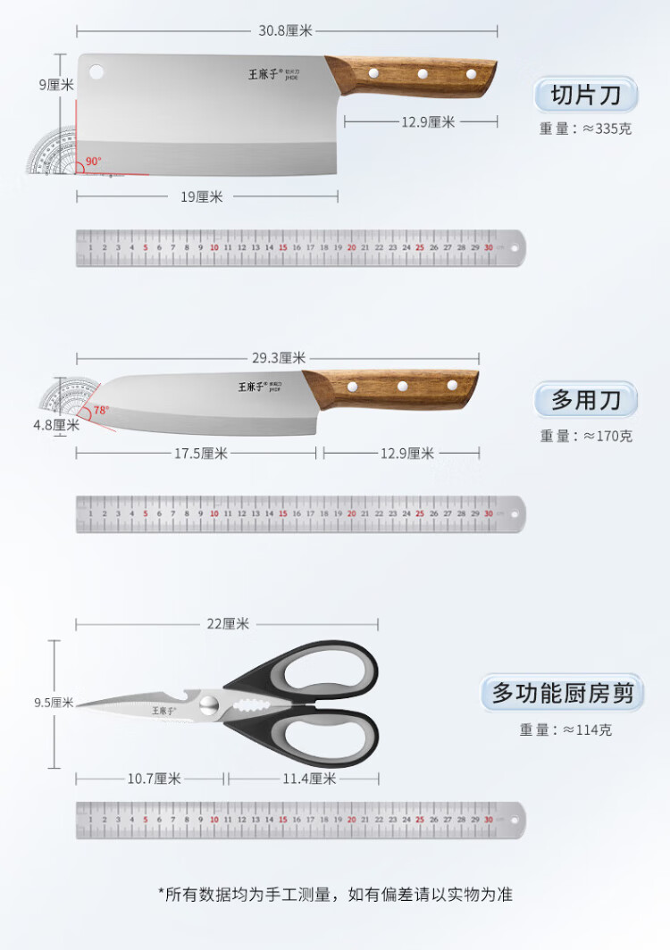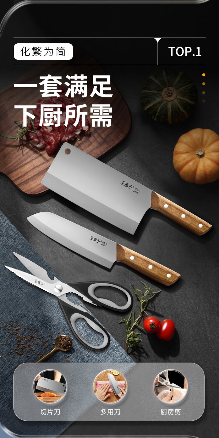 Wang Mazi Messerset, Küchenutensilien, Schneiden, Knochen schneiden, Fleisch und Gemüse schneiden, Mehrzweck-Obstmesser, komplettes Set Küchenmesser, dreiteiliges Set Haushaltsküchenmesser
