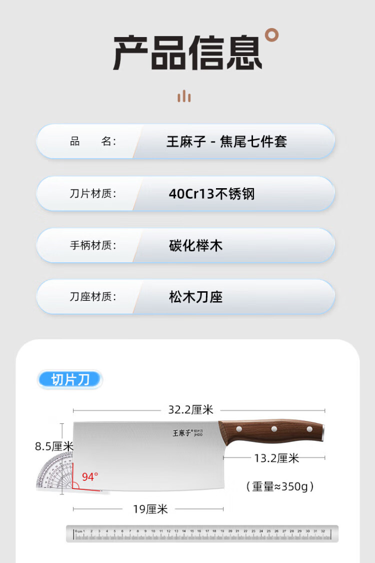 王麻子刀具全套菜刀套装 家用菜刀菜板厨具全套 砍斩骨切菜刀水果刀剪刀厨房用具大全